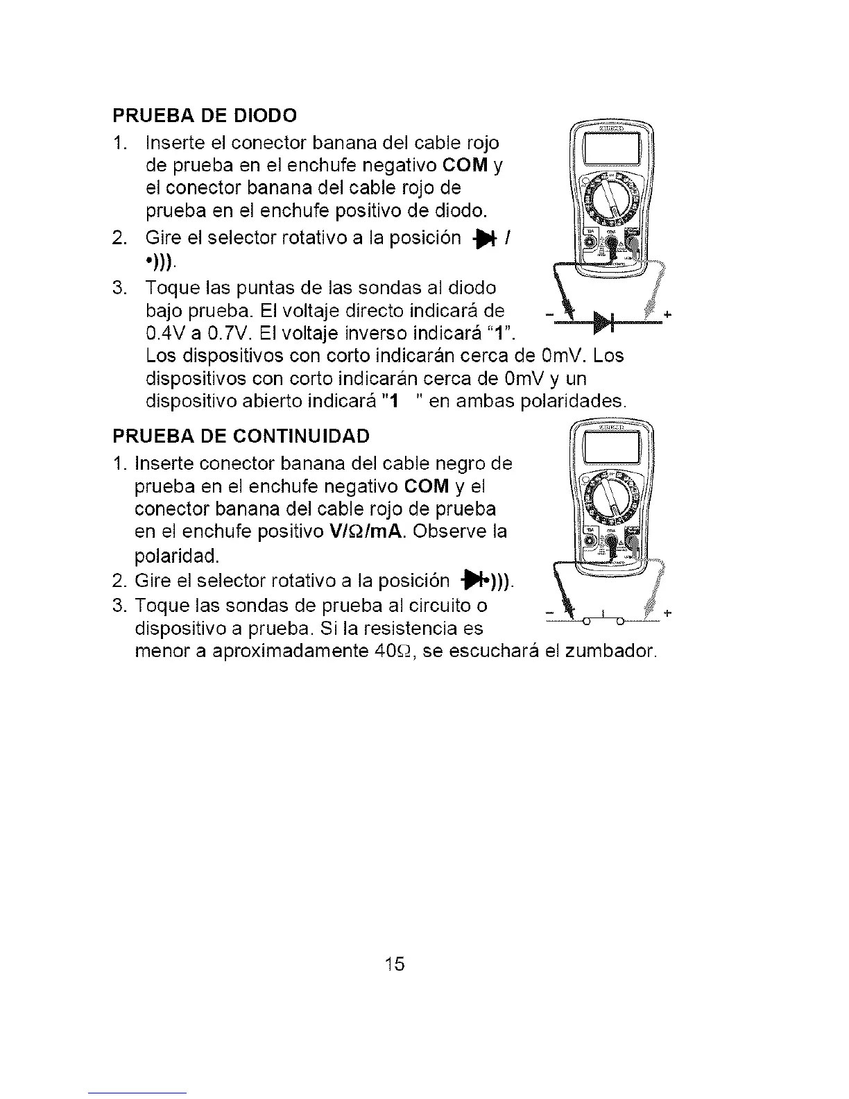 3. Toque las puntas de las sondas al diodo