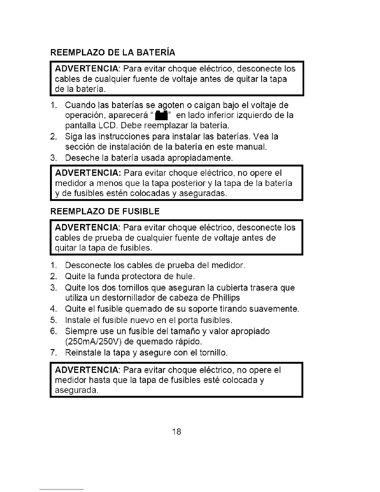 I DVERTENCIA: Para evitar choque electrico, desconecte los