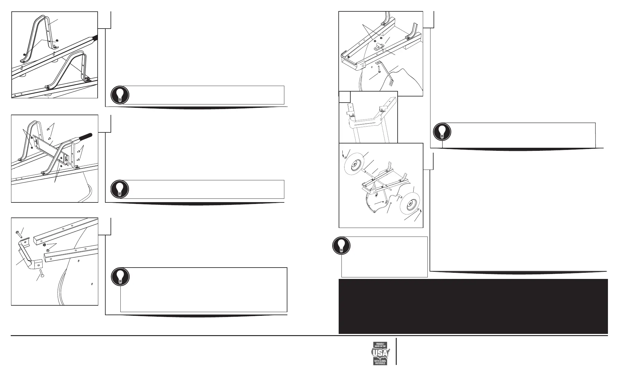 Bolts should point to the inside of the handles. Use a ½” wrench or socket to fully tight-