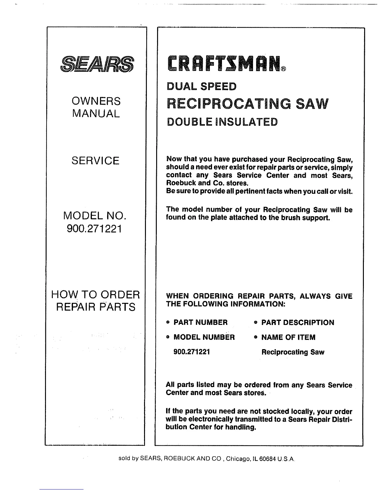 sold by SEARS, ROEBUCK AND CO, Chicago, IL 60684 USA
