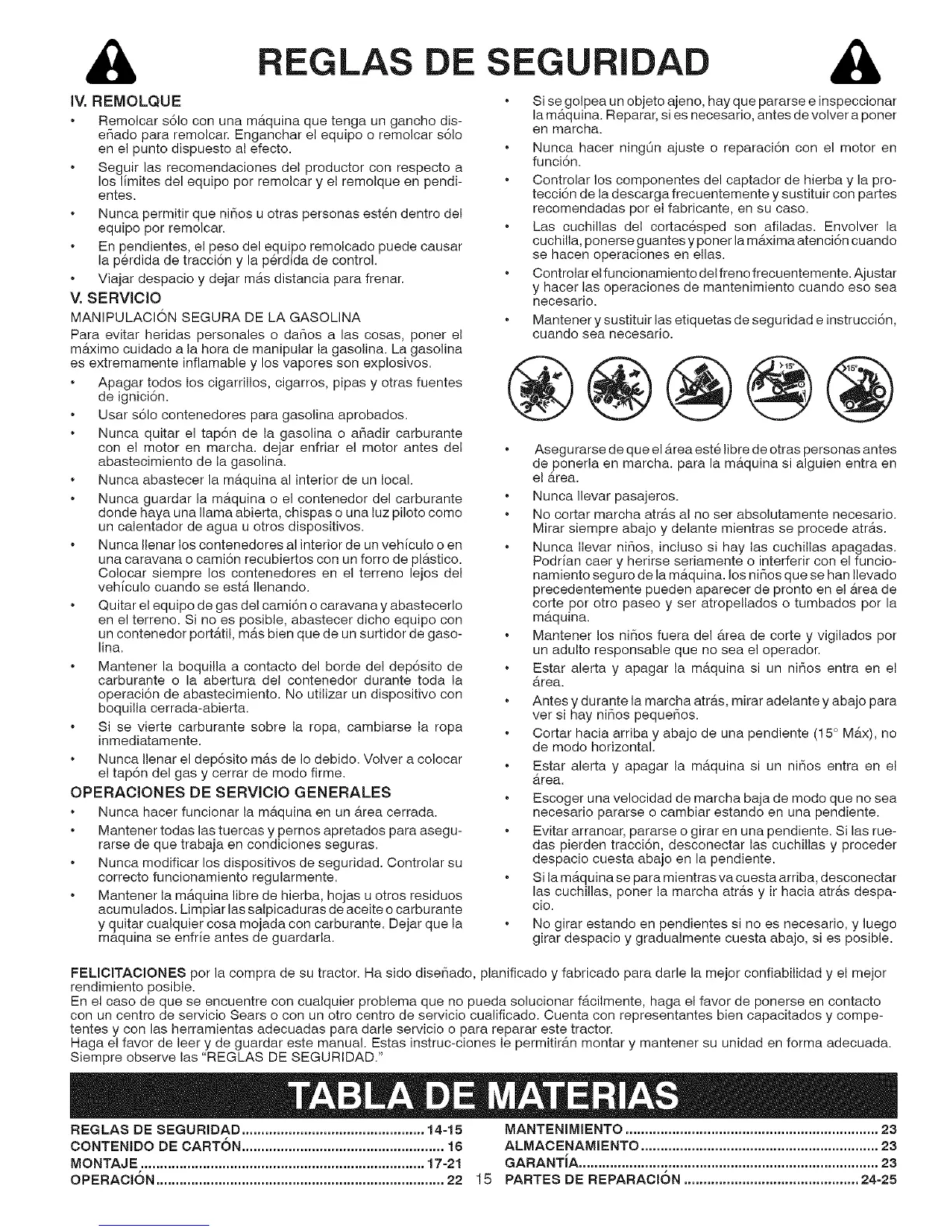 REGLAS DE SEGURIDAD ............................................... 14-15 MANTENIMIENTO ................................................................. 23
