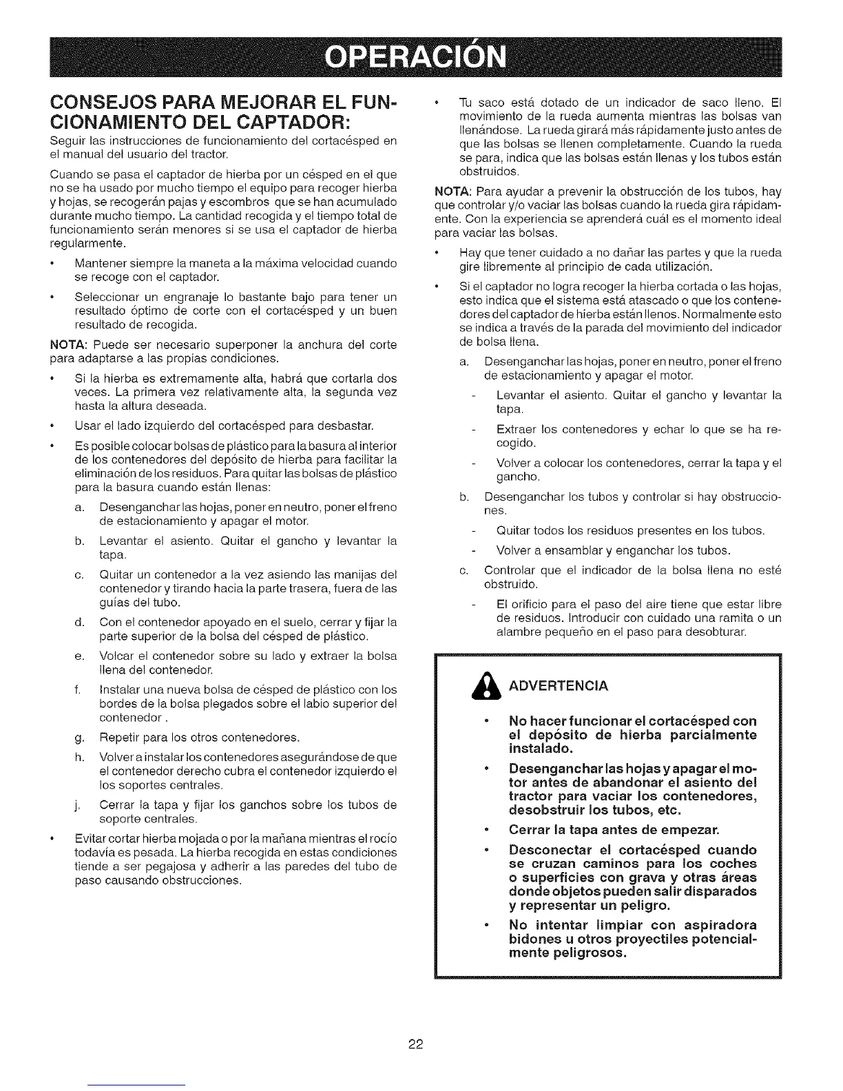 dores del captador de hierba estan Ilenos. Normalmente esto