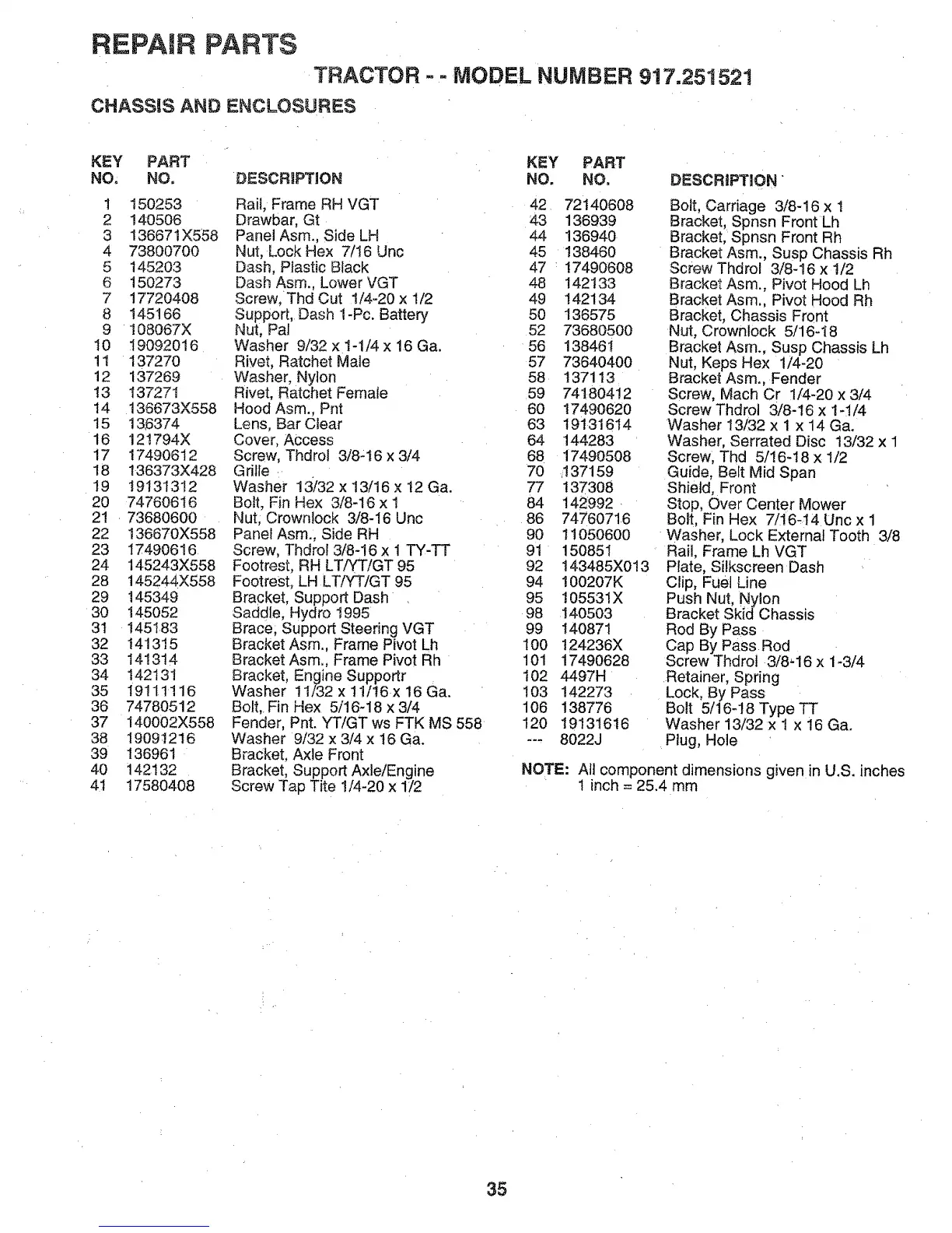 TRACTOR - = MODEL NUMBER 917.251521