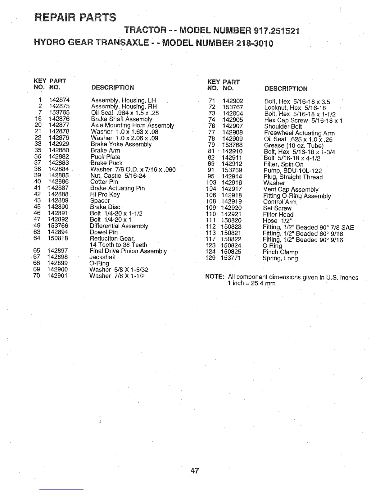 TRACTOR - - MODEL NUMBER 917.251521