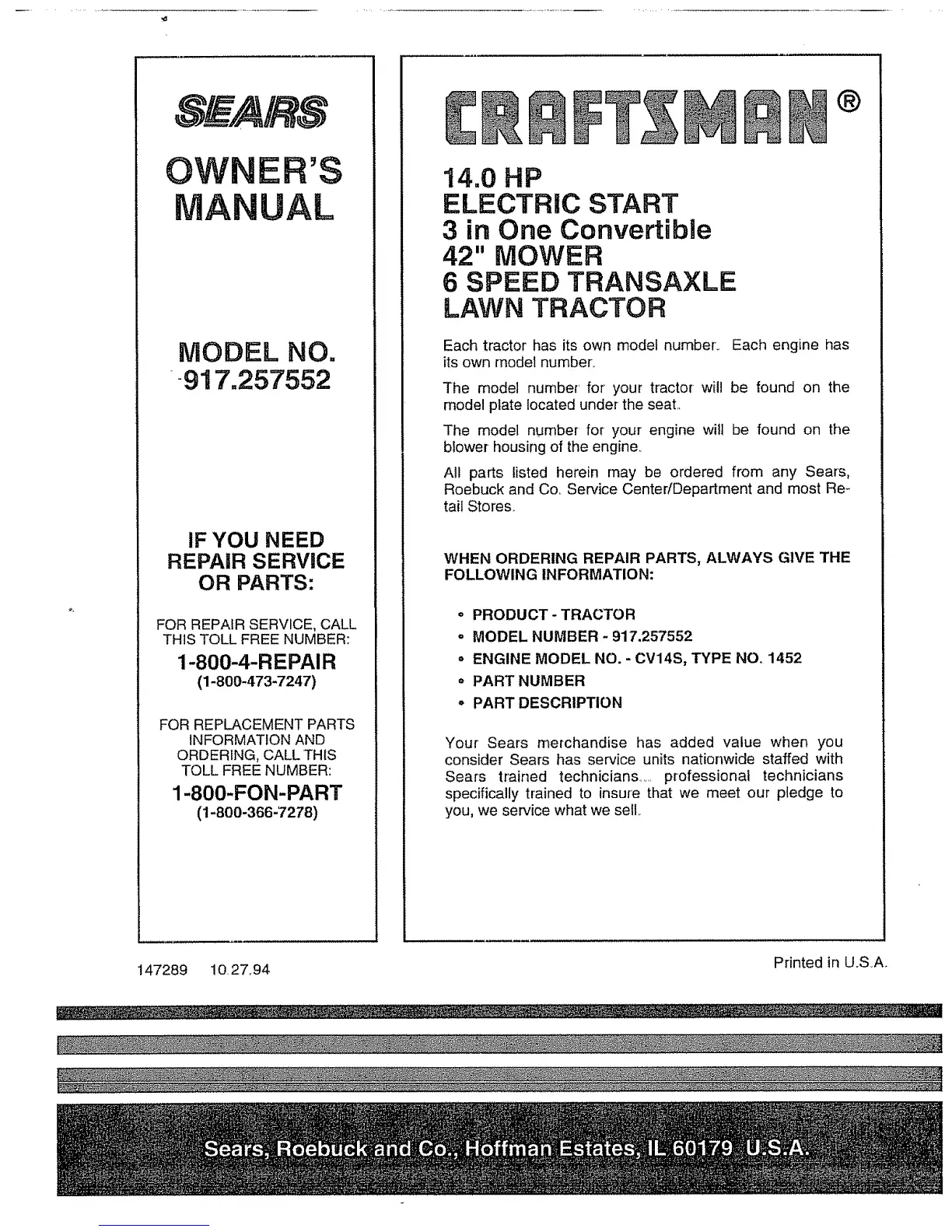 ° MODEL NUMBER - 917.257552
