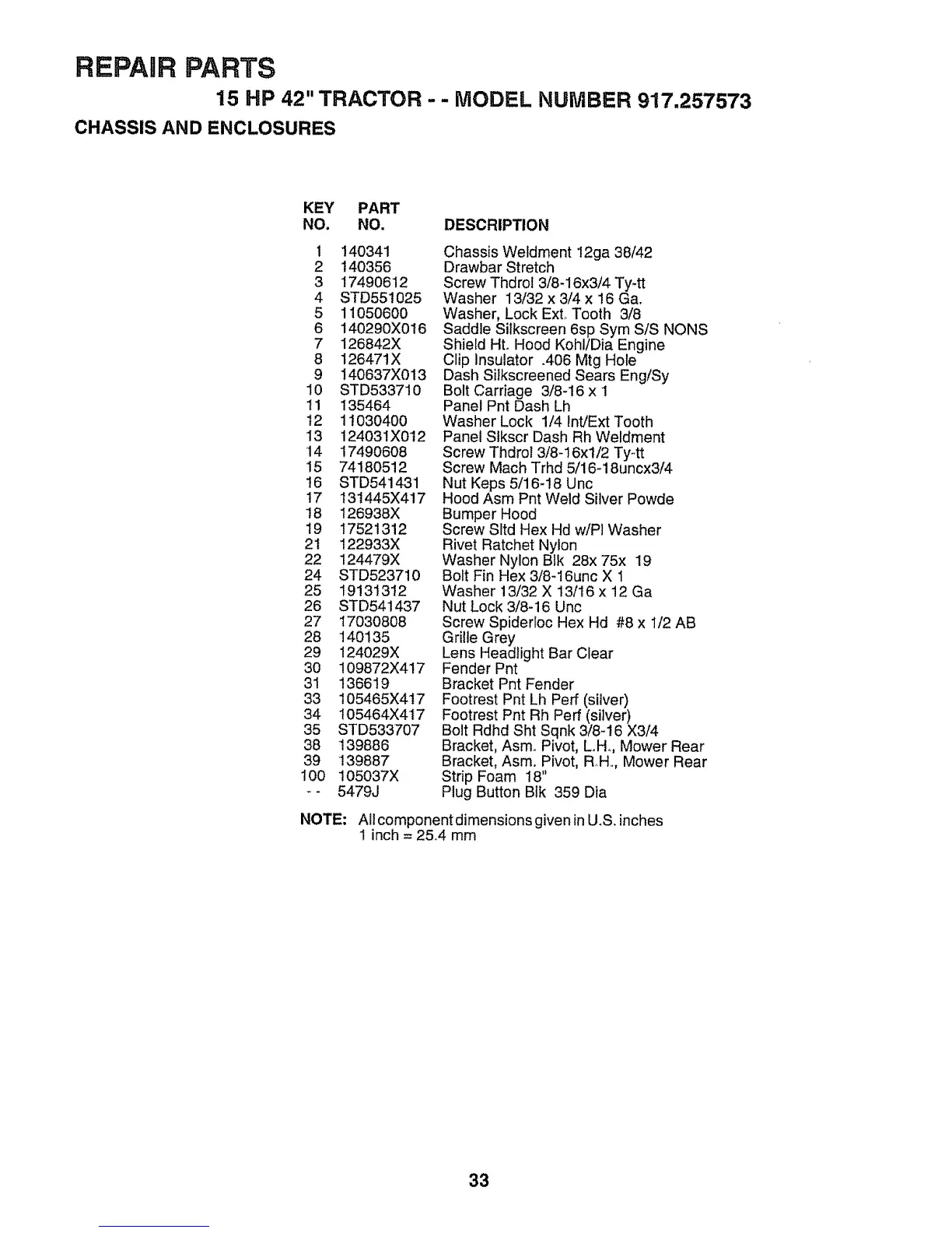 15 HP 42" TRACTOR - - MODEL NUMBER 917,257573