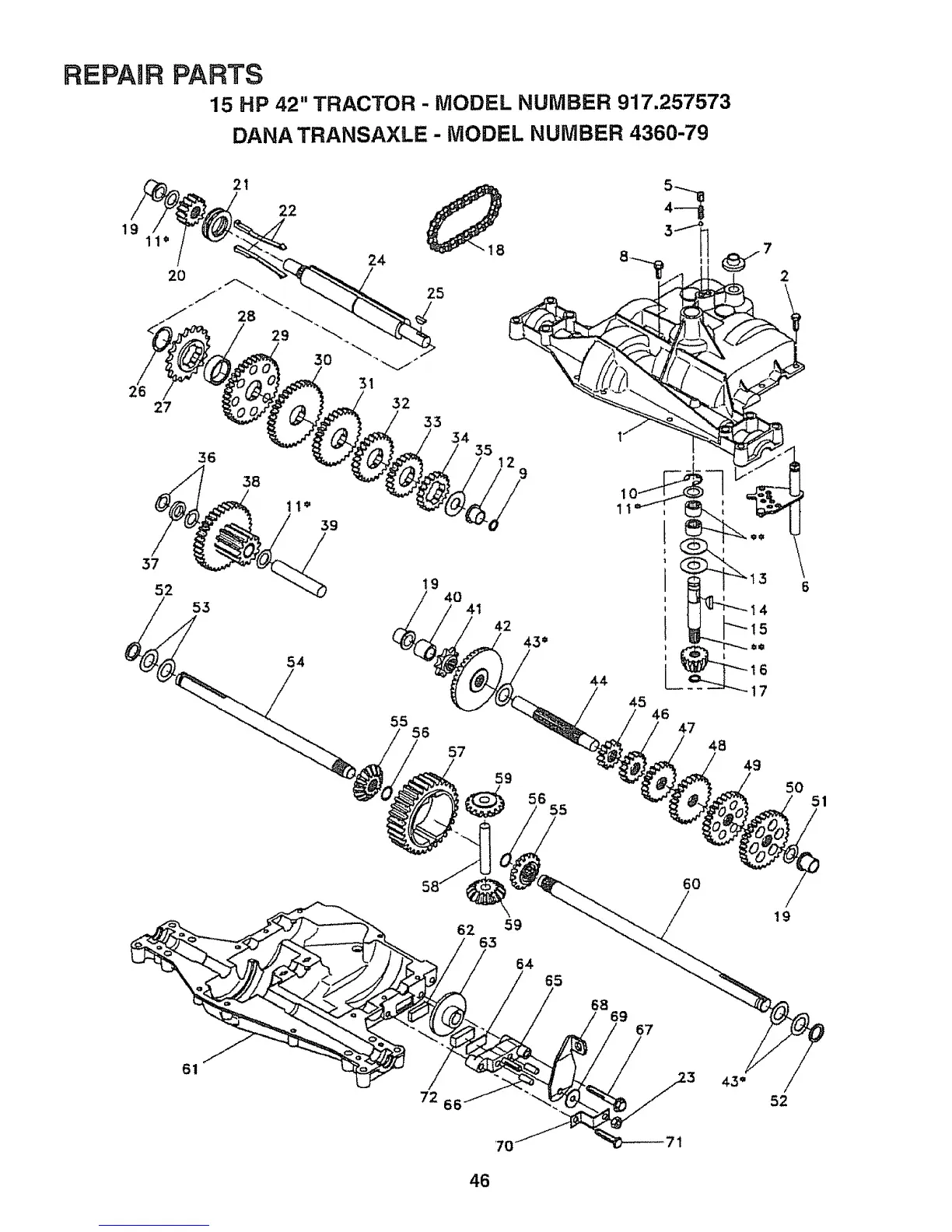 Craftsman 917.257573 - REPAIR PARTS - DANA TRANSAXLE