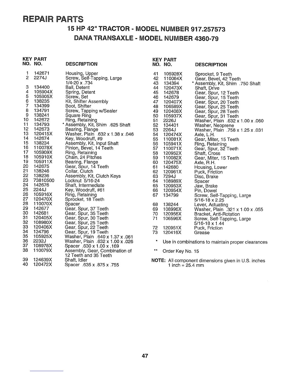 15 HP 42" TRACTOR - MODEL NUMBER 917.257573