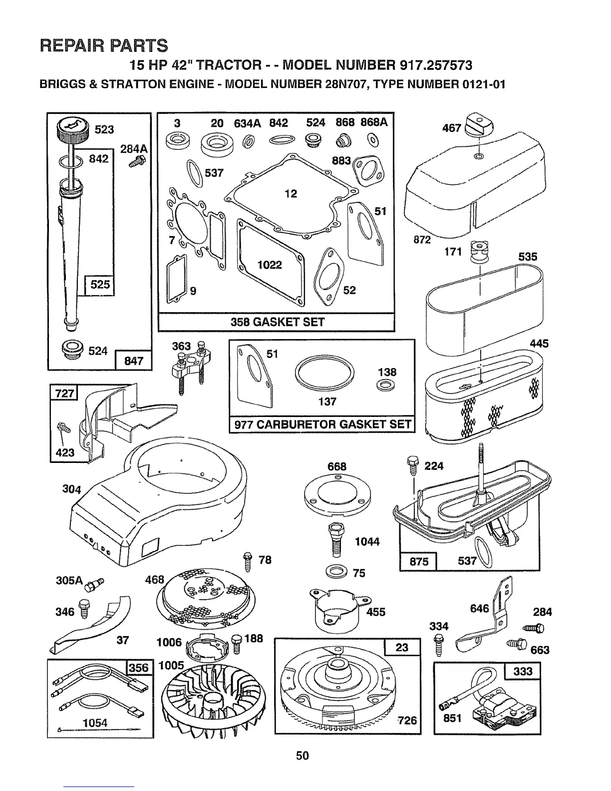 15 HP 42" TRACTOR-- MODEL NUMBER 917.257573