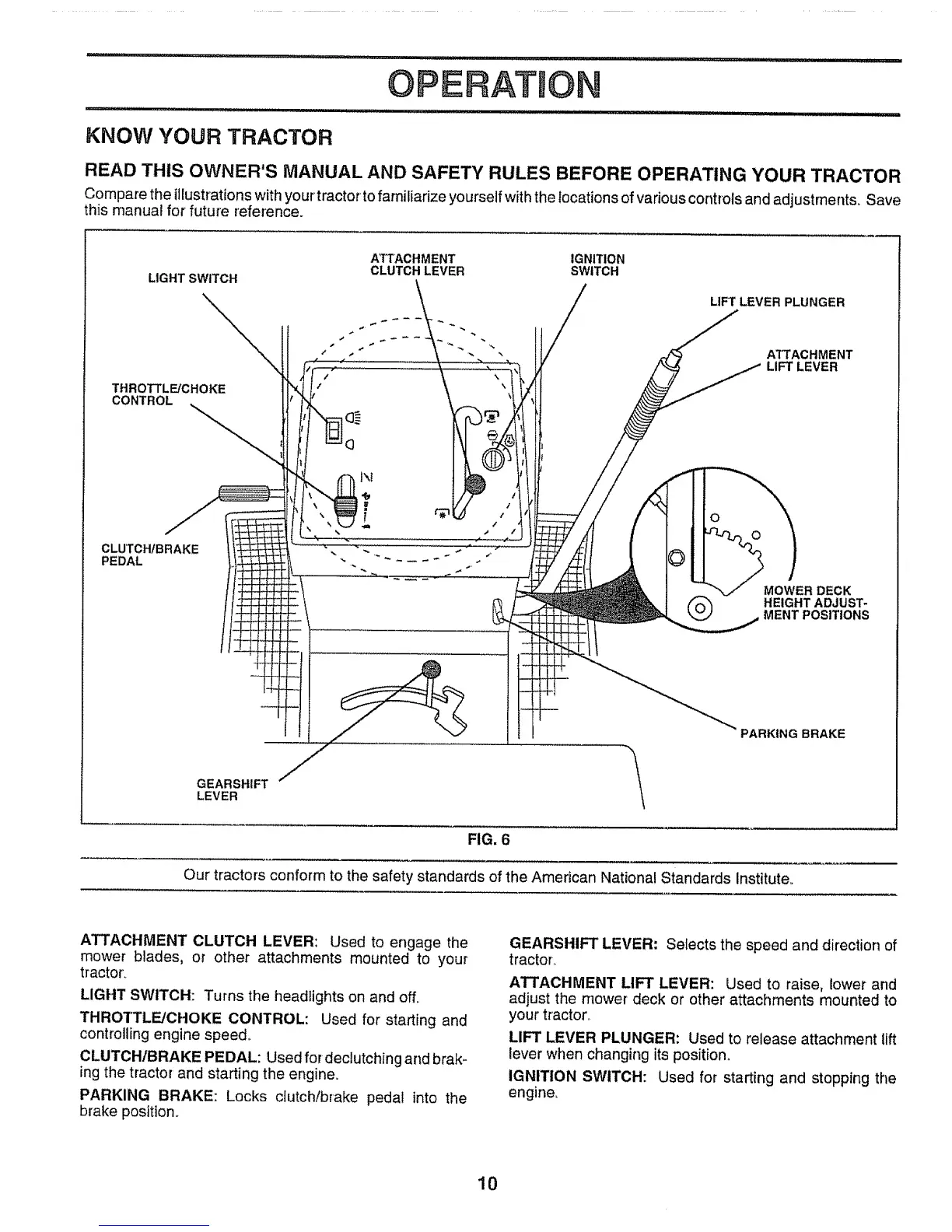 Compare the illustrations with your tractor tofamiliarize yourself with the locations of various controls and adjustments° Save