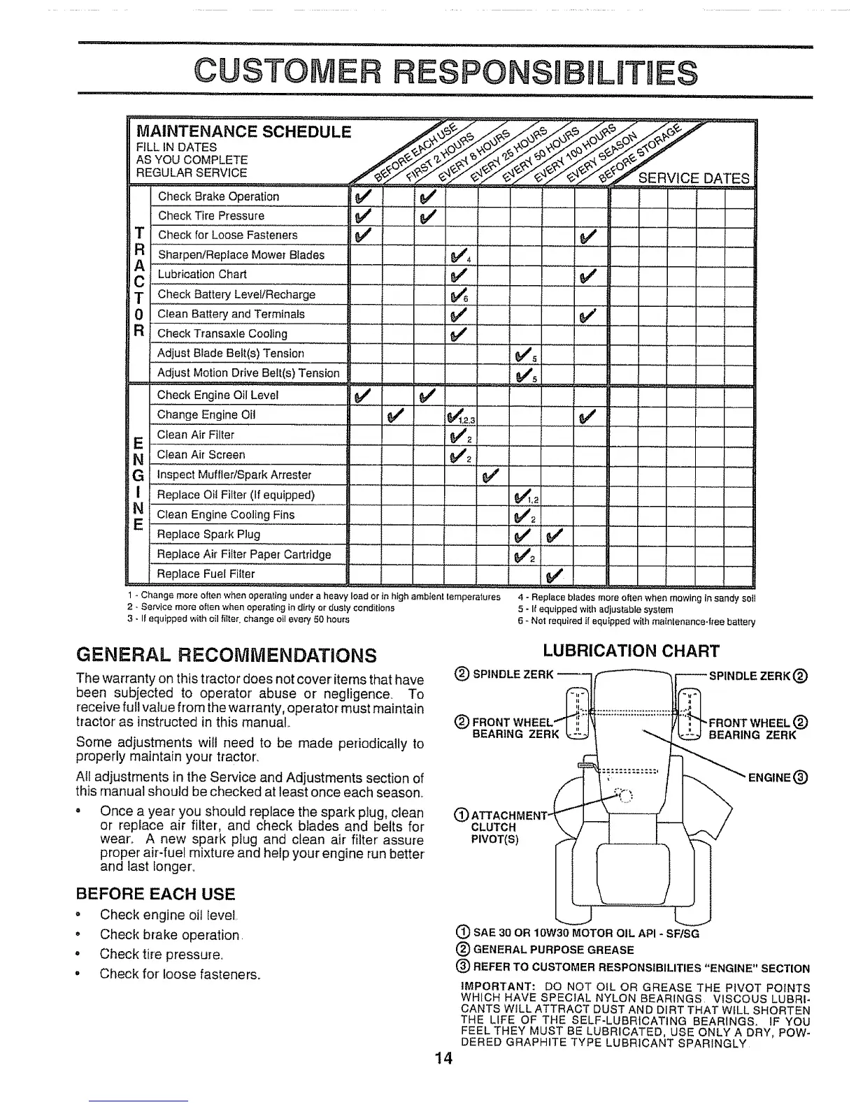 ® REFER TO CUSTOMER RESPONSIBILITIES "ENGINE" SECTION