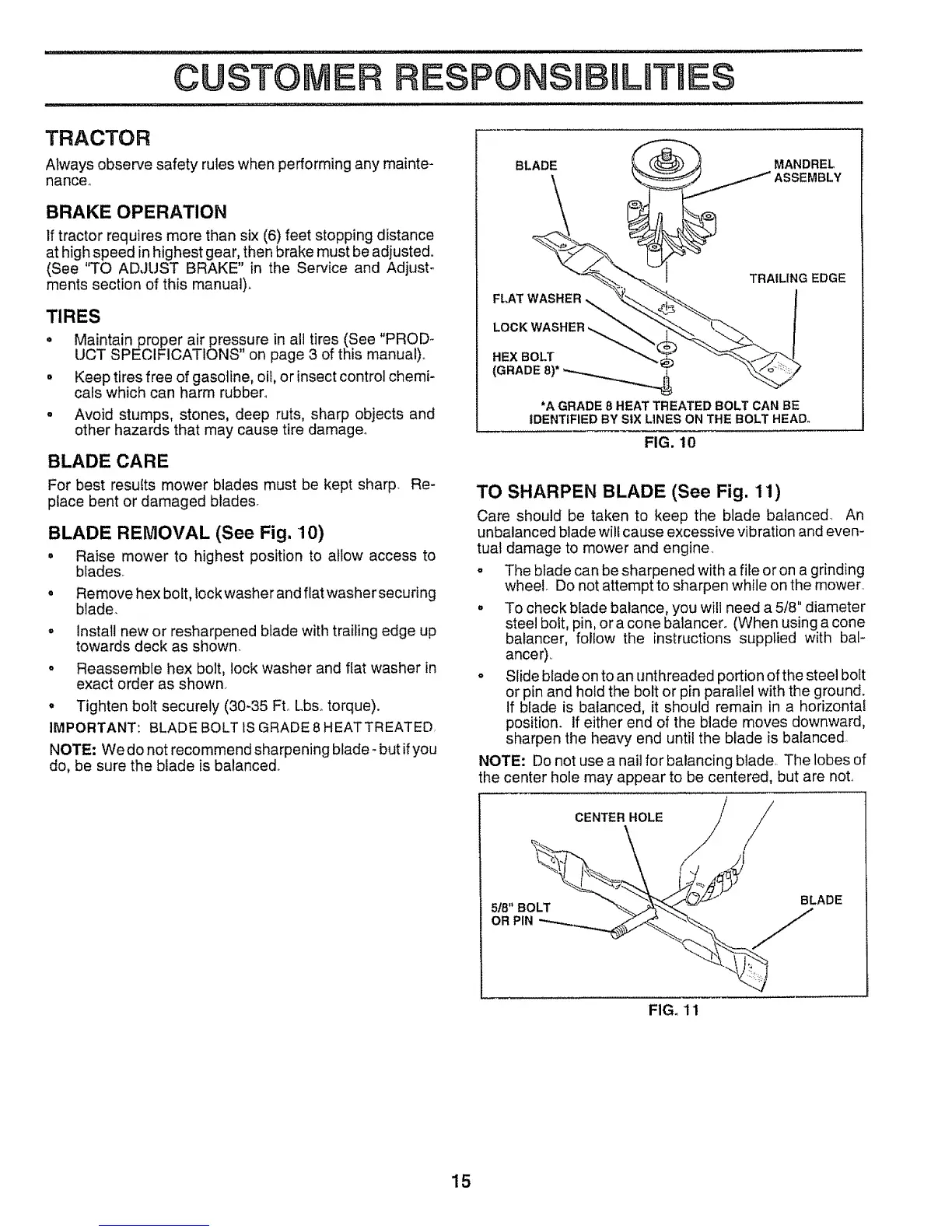 IMPORTANT: BLADE BOLT tS GRADE8 HEATTREATED,