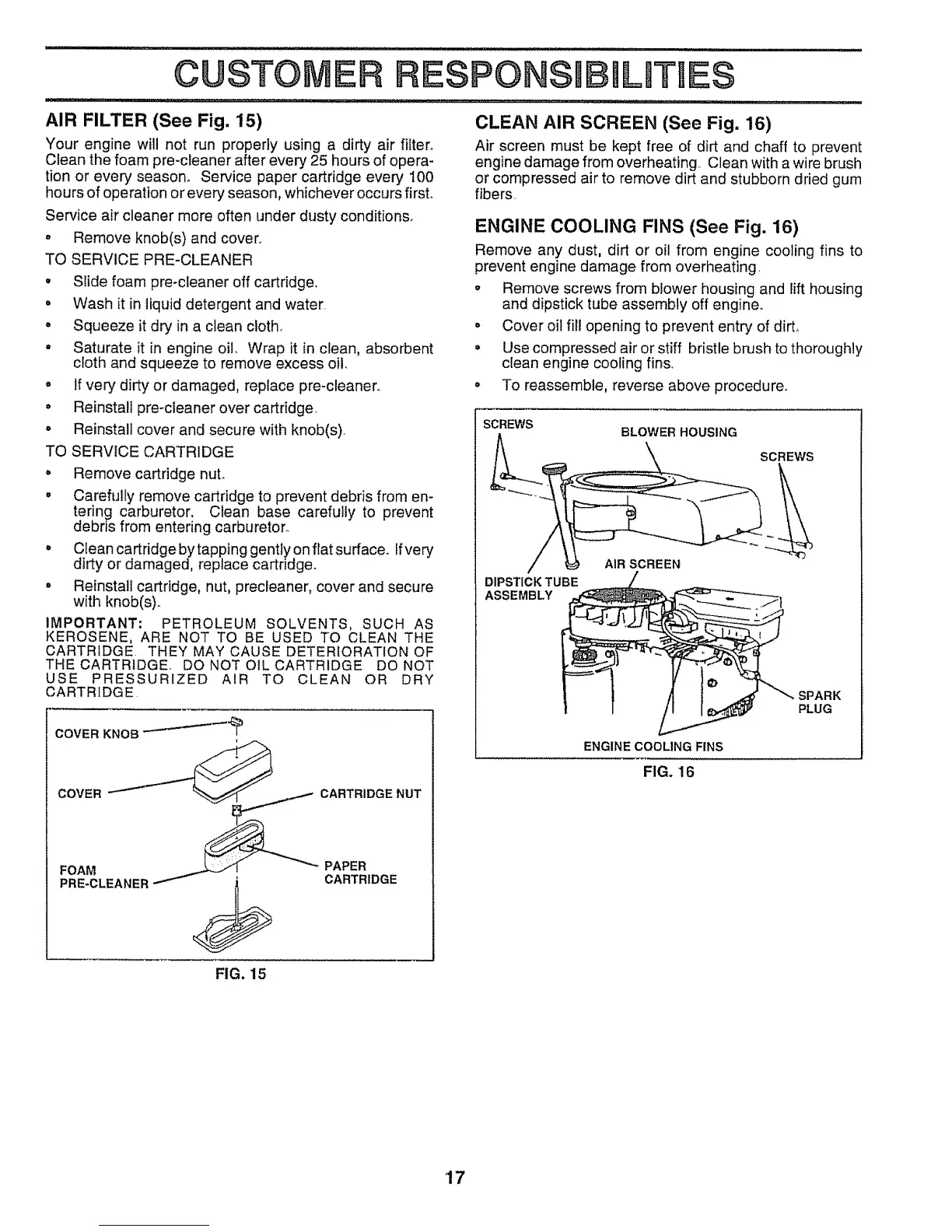 ENGINE COOLING FINS (See Fig. 16)