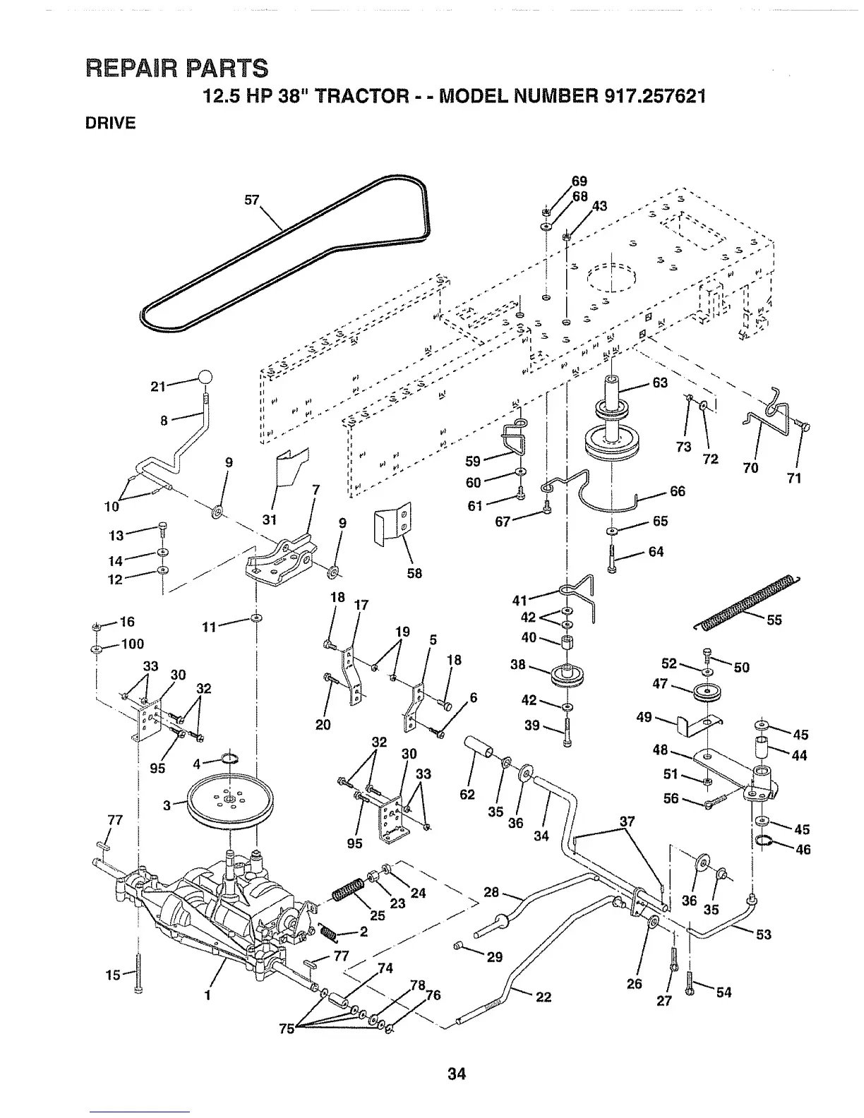 12.5 HP 38" TRACTOR - - MODEL NUMBER 917.257621