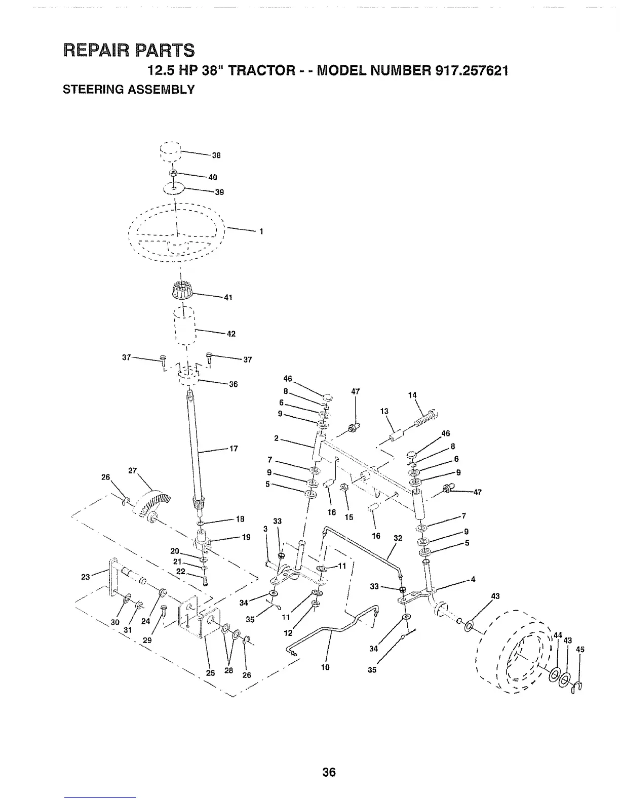 12.5 HP 38" TRACTOR - - MODEL NUMBER 917.257621