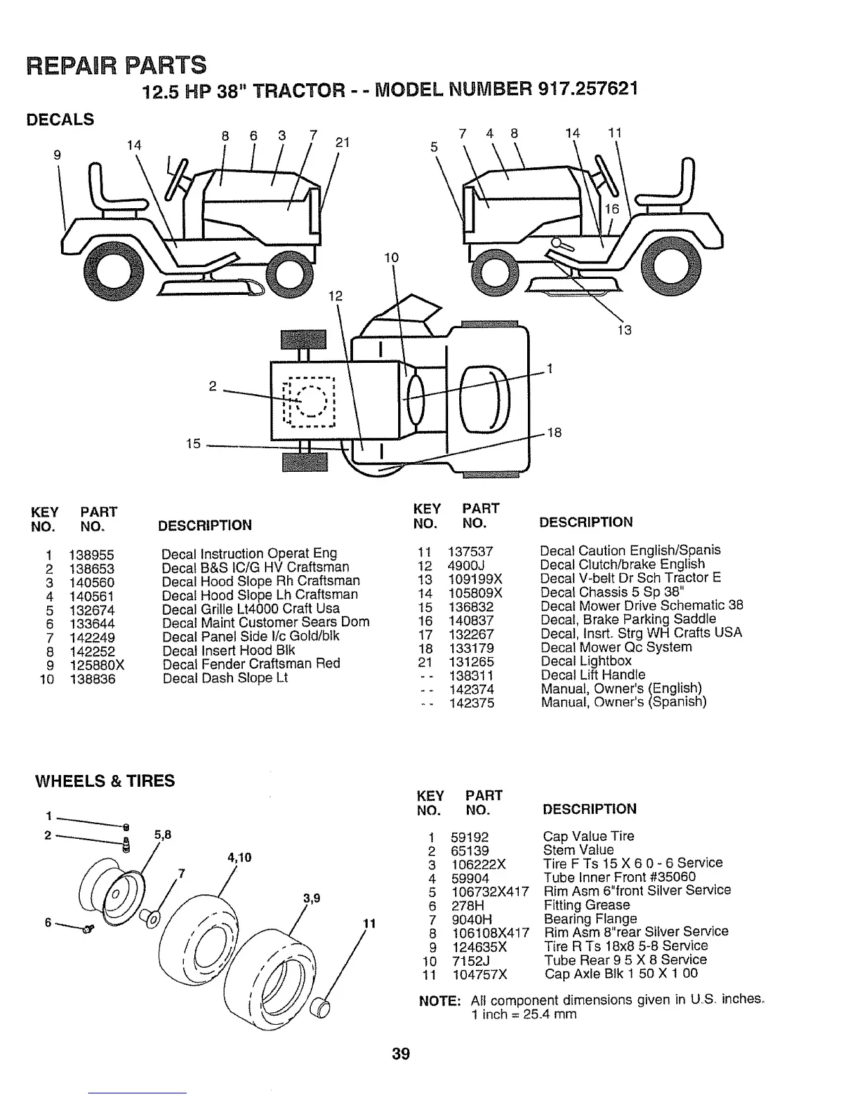 12.5 HP 38" TRACTOR -- MODEL NUMBER 917.257621