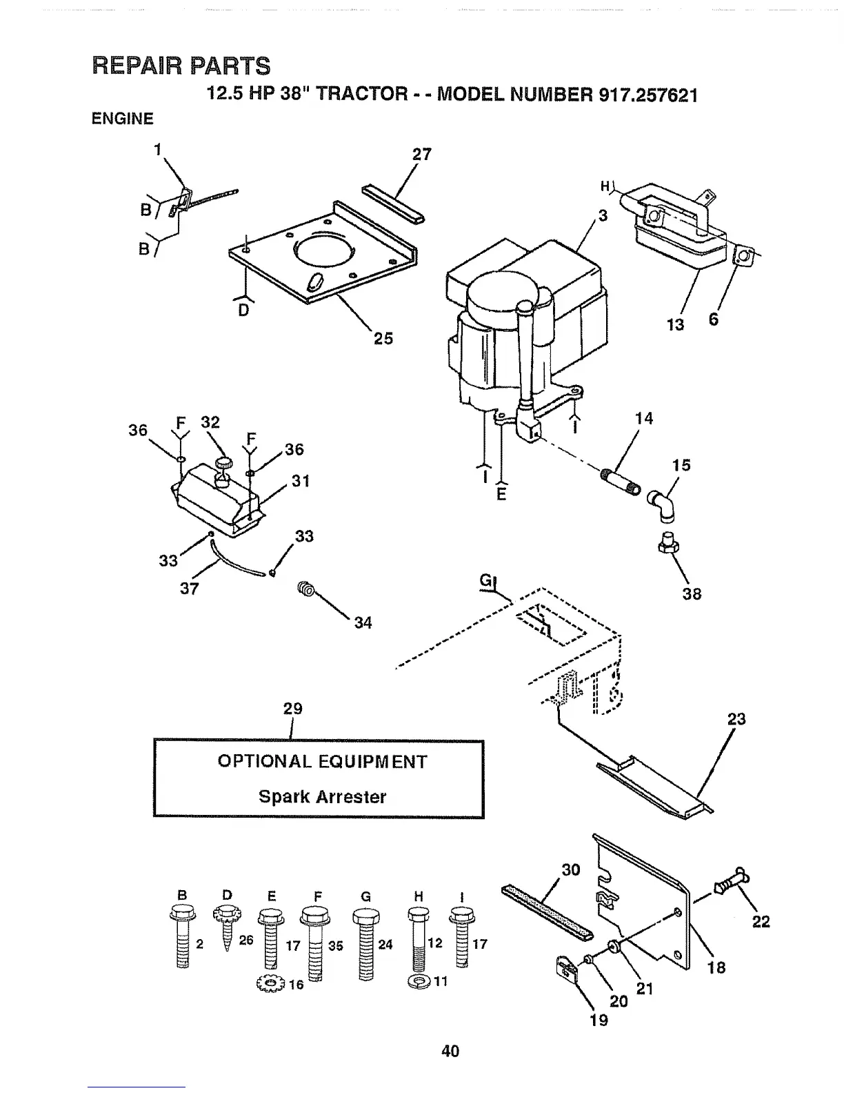 12.5 HP 38" TRACTOR -- MODEL NUMBER 917.257621
