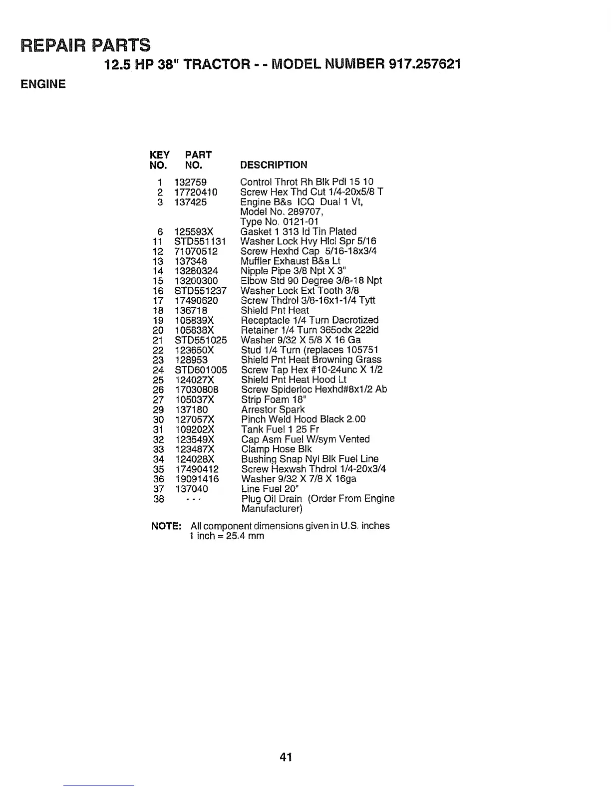 12.5 HP 38" TRACTOR ..- MODEL NUMBER 917.257621