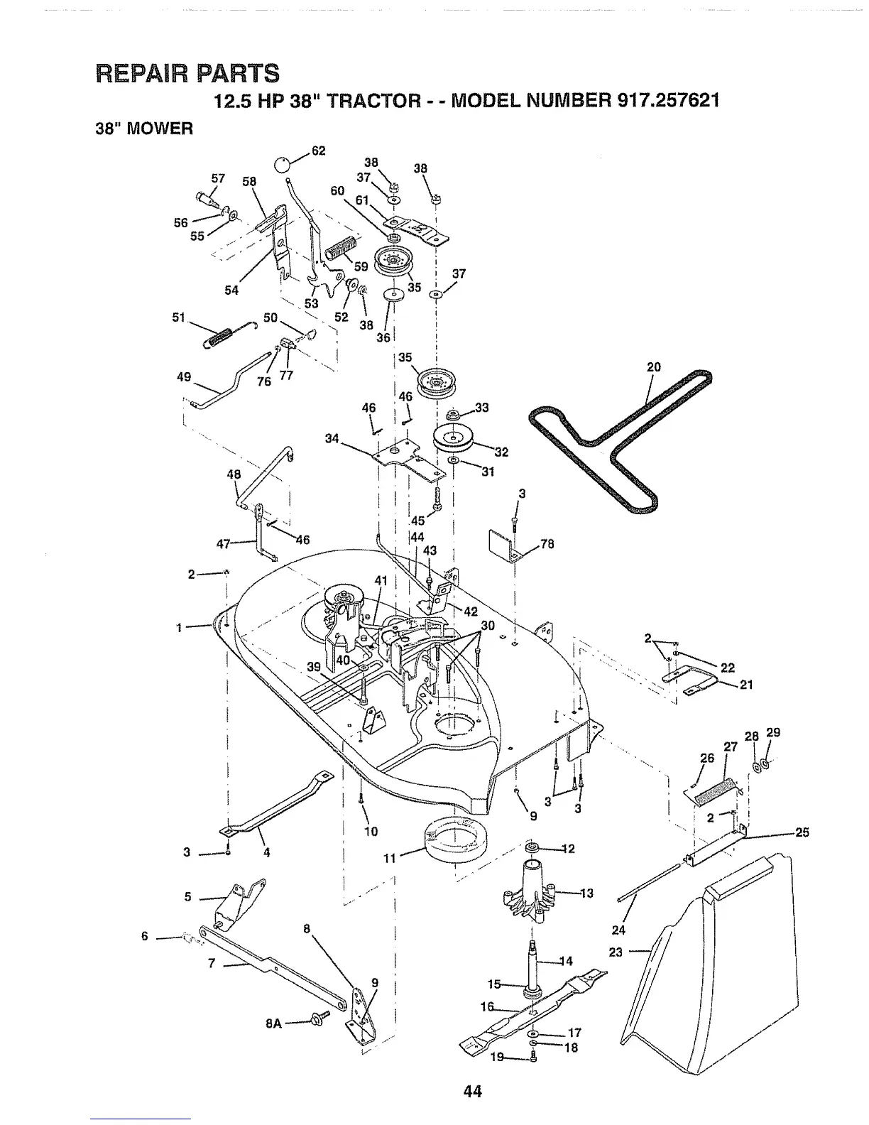 12.5 HP 38" TRACTOR - - MODEL NUMBER 917.257621