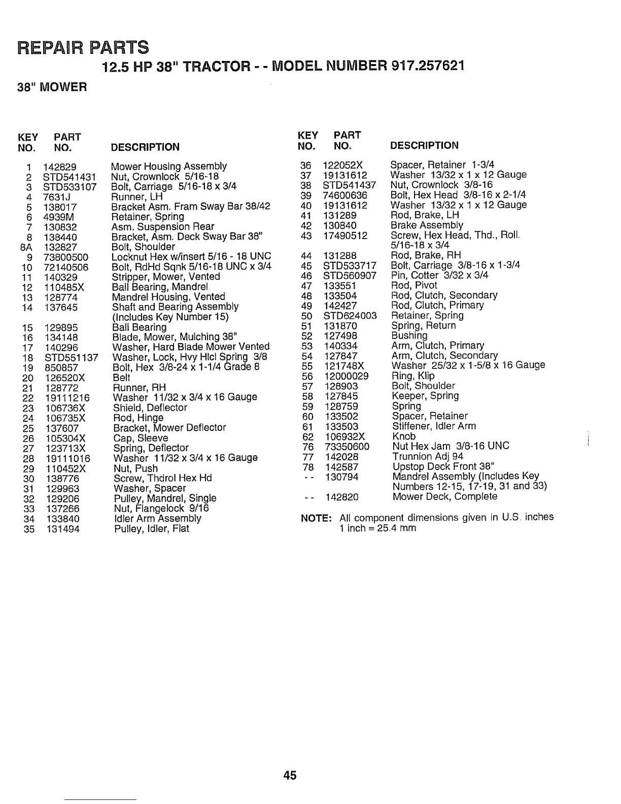 12.5 HP 38" TRACTOR -- MODEL NUMBER 917.257621