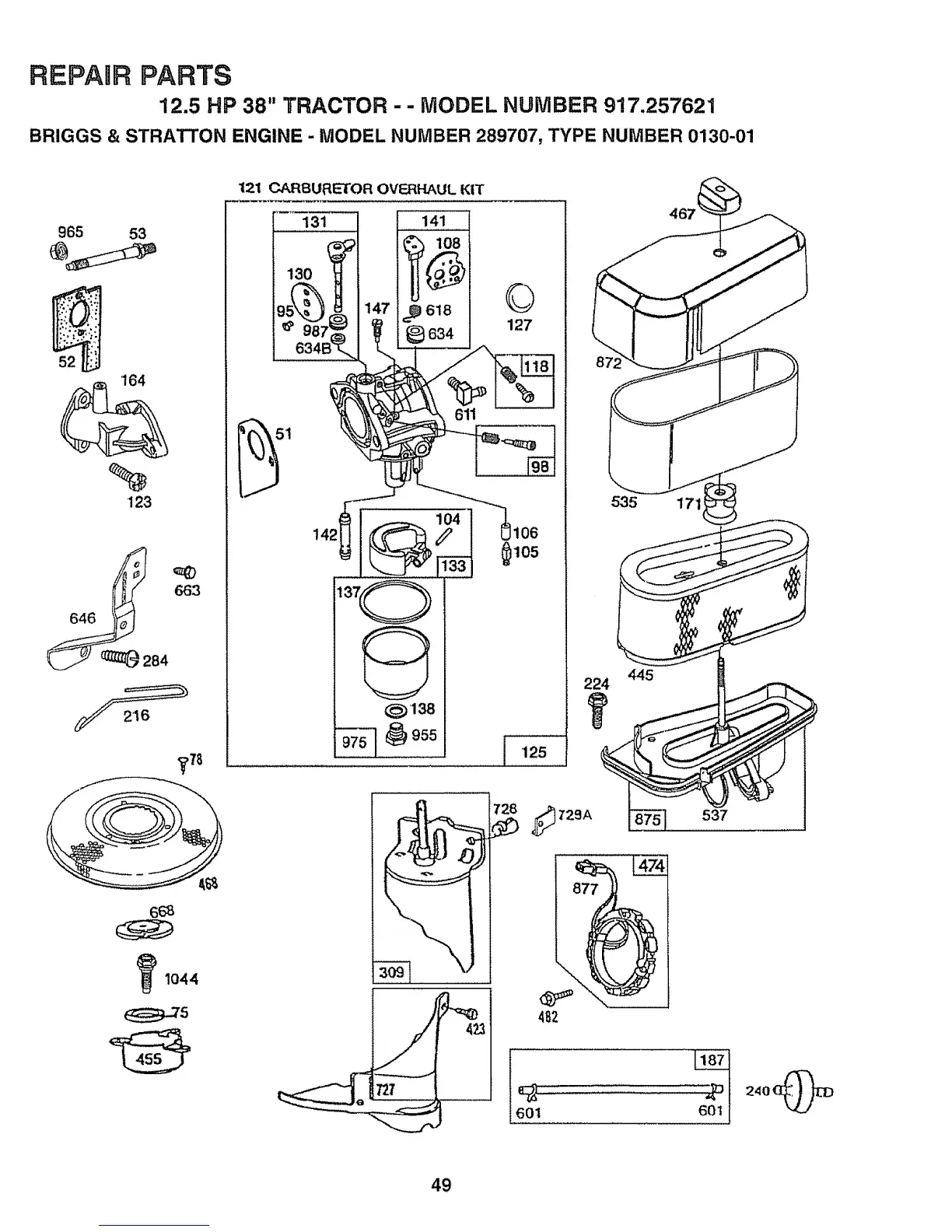 12.5 HP 38" TRACTOR - - MODEL NUMBER 917.257621