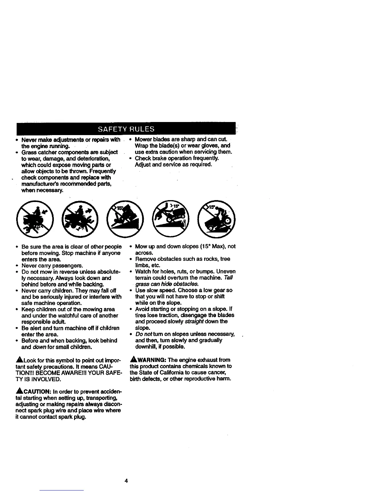 • Mow up and down slopes (15 ° Max), not