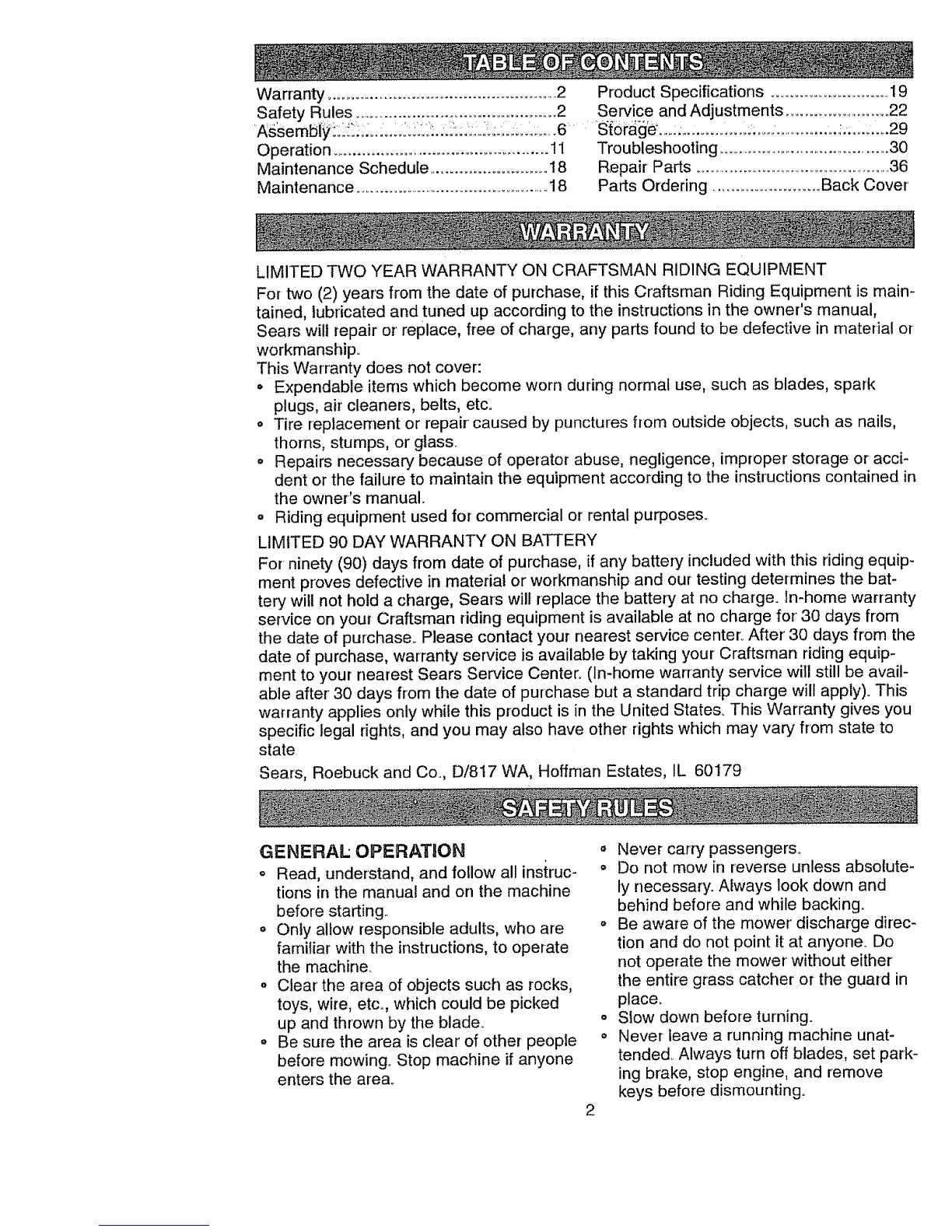 date of purchase, warranty service is available by taking your Craftsman riding equip-
