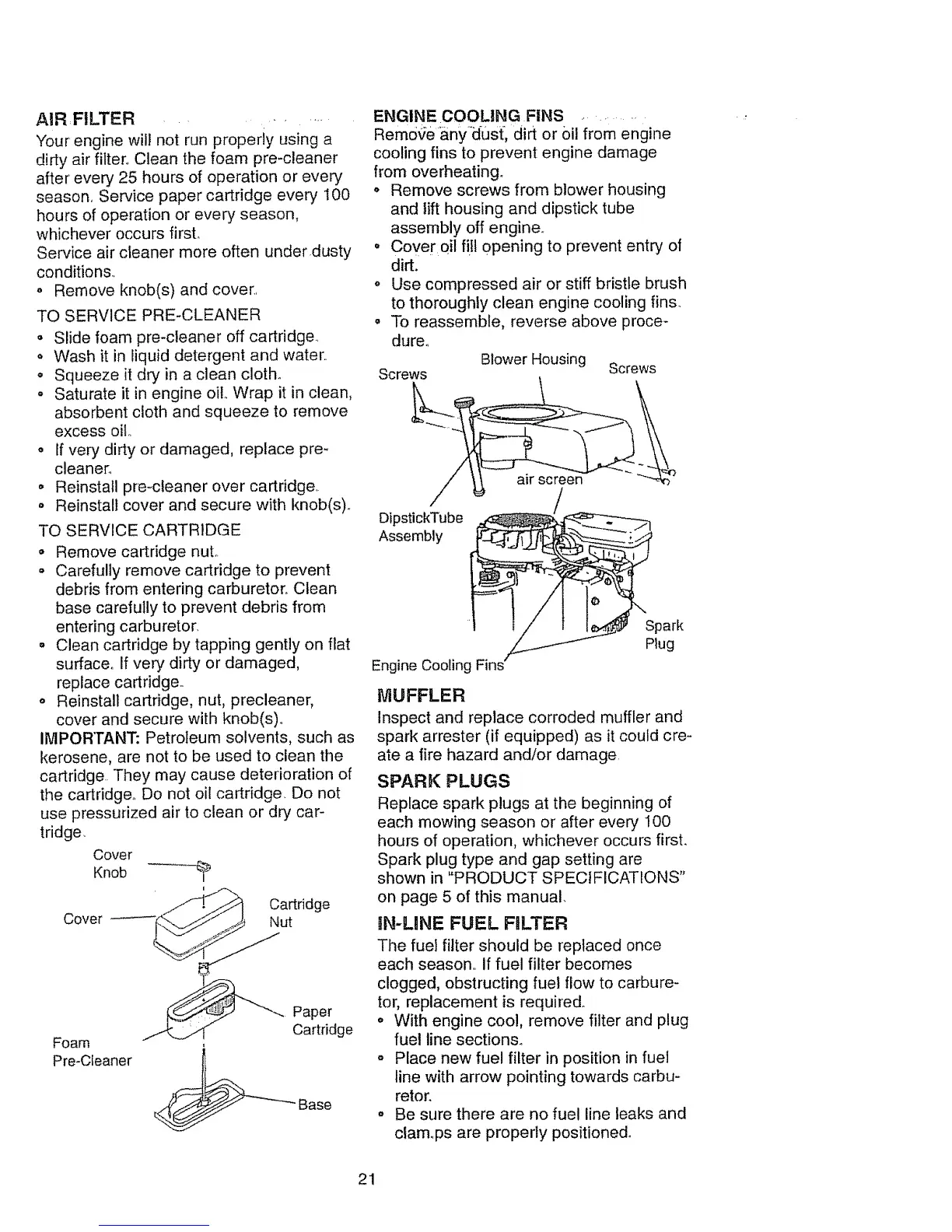 Service air cleaner more often under.dusty