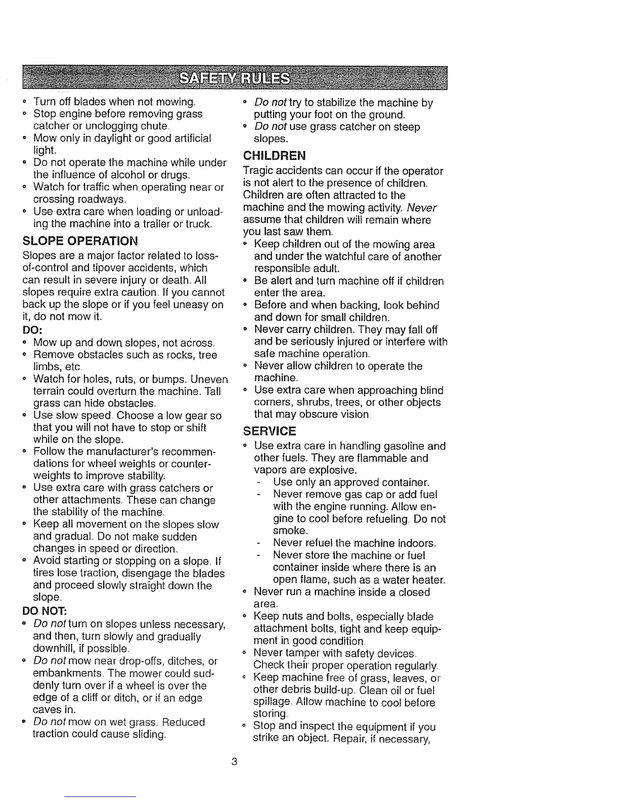 ,, Turnoffbladeswhennot mowing..