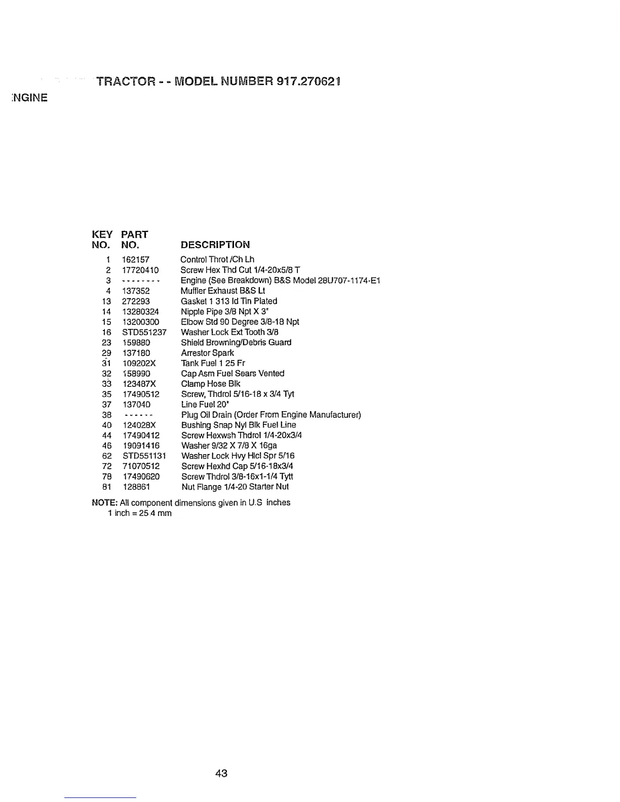 .... TRACTOR - o MODEL NUMBER 917.27062_