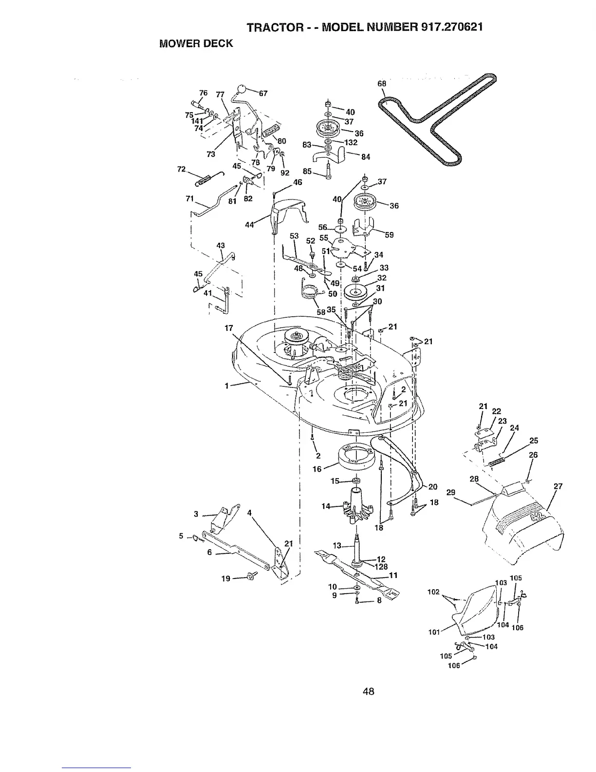 Craftsman 917.270621 - Mower Deck Parts List & View