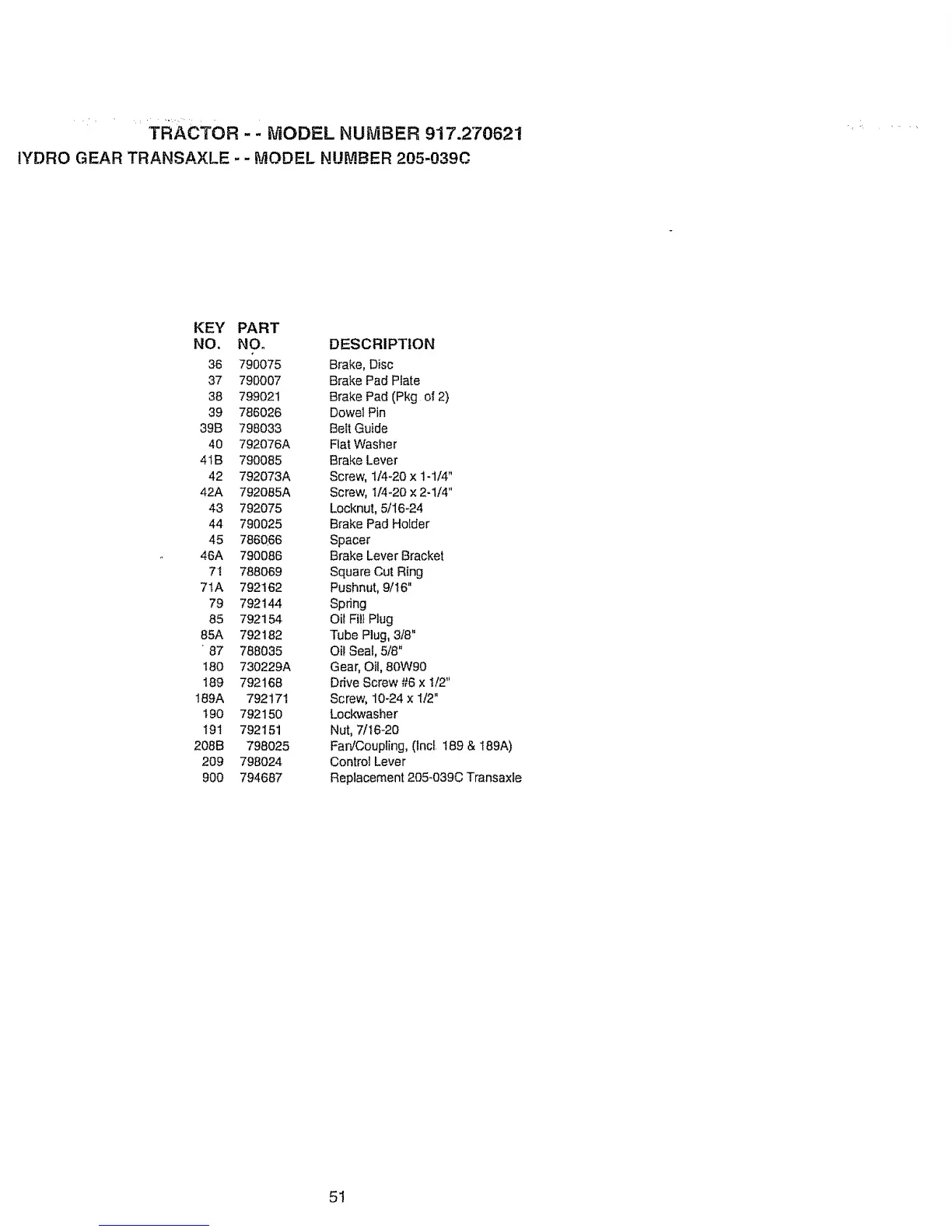 IYDRO GEAR TRANSAXLE - - MODEL NUMBER 205-039C