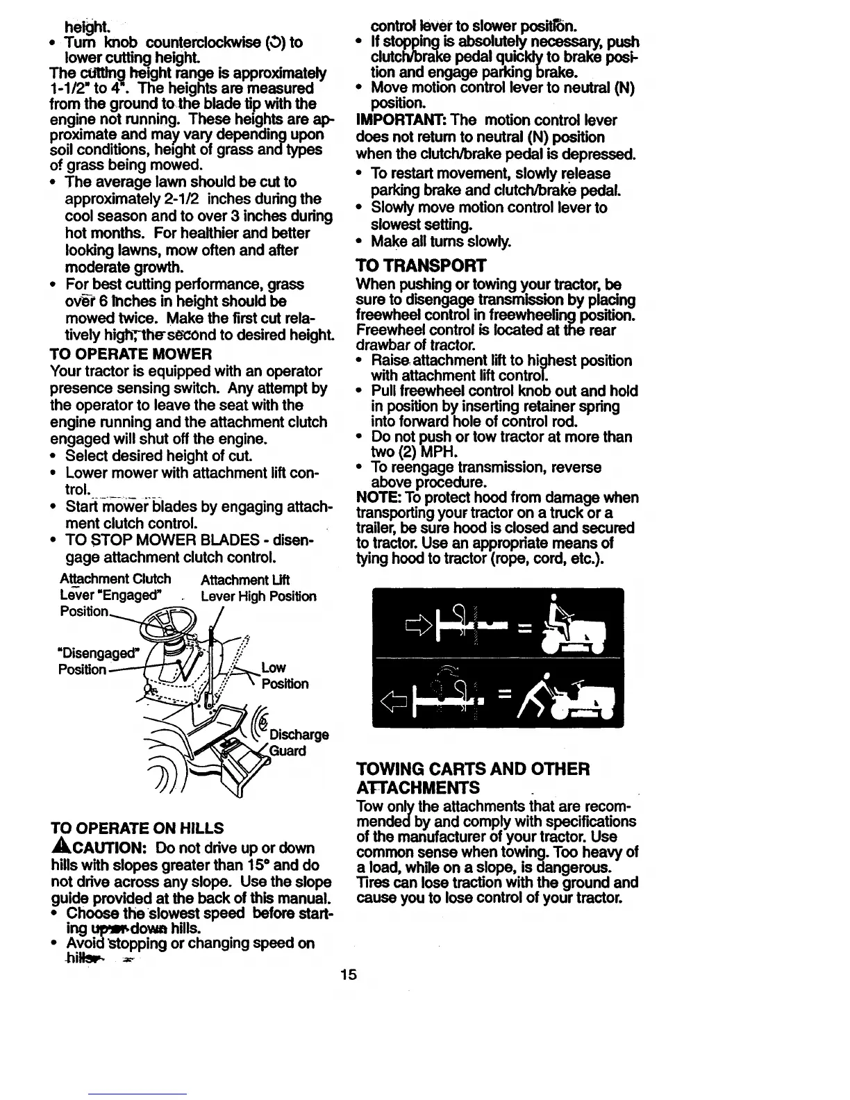 When pushingor towingyour tractor,be