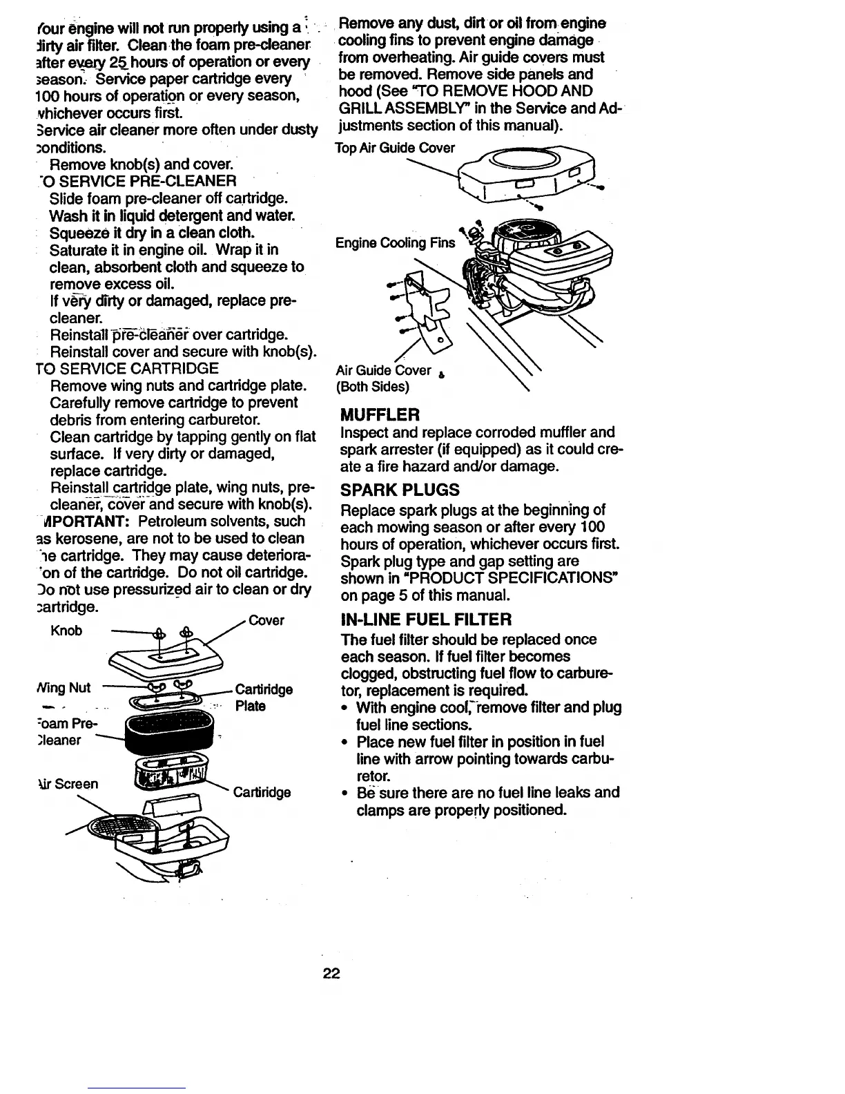 • With engine cool,i'emovefilter and plug