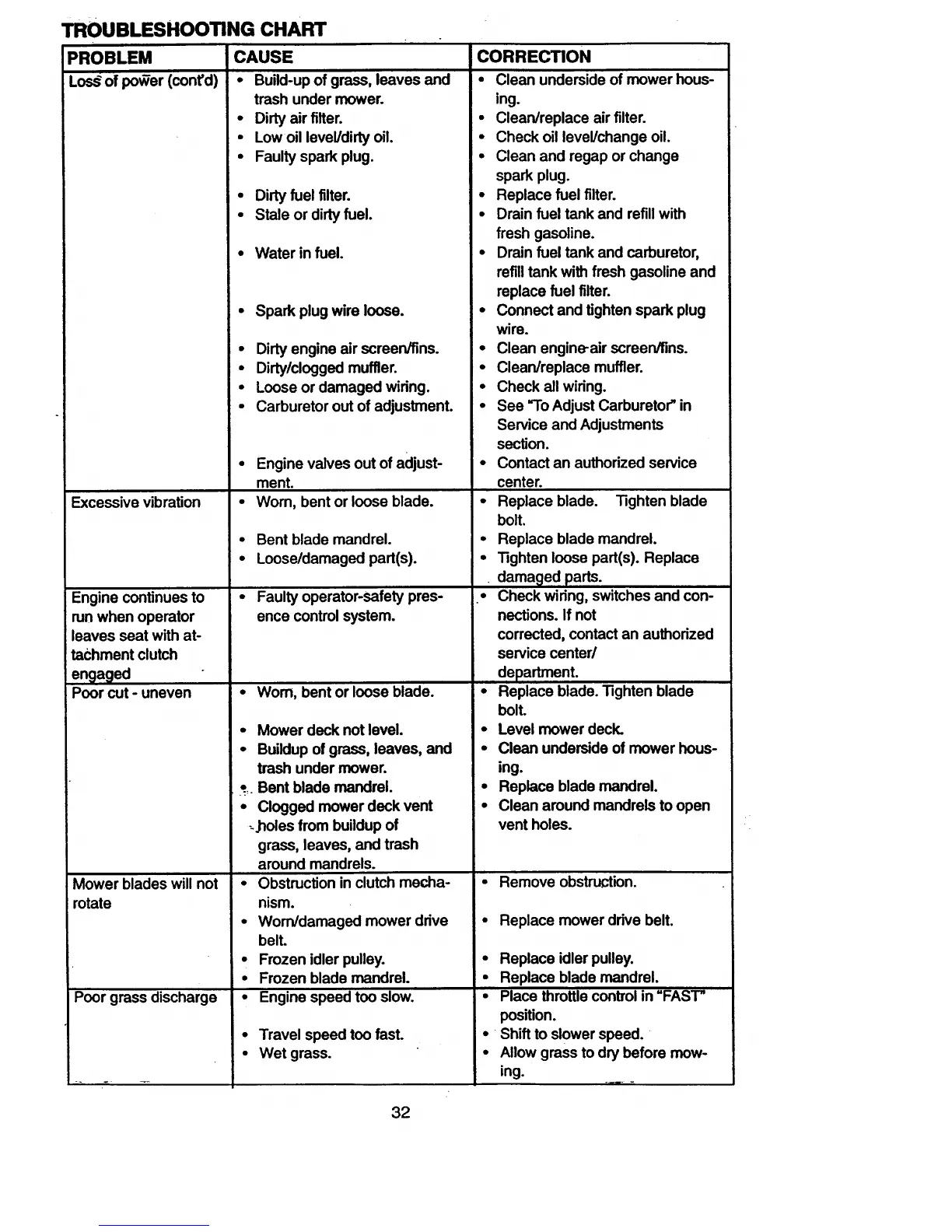 • Clean/replace muffler.