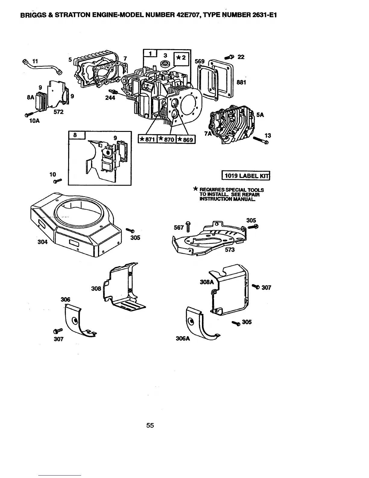 BRI_;GS & STRATTON ENGINE-MODEL NUMBER 42E707, TYPE NUMBER 2631-E1