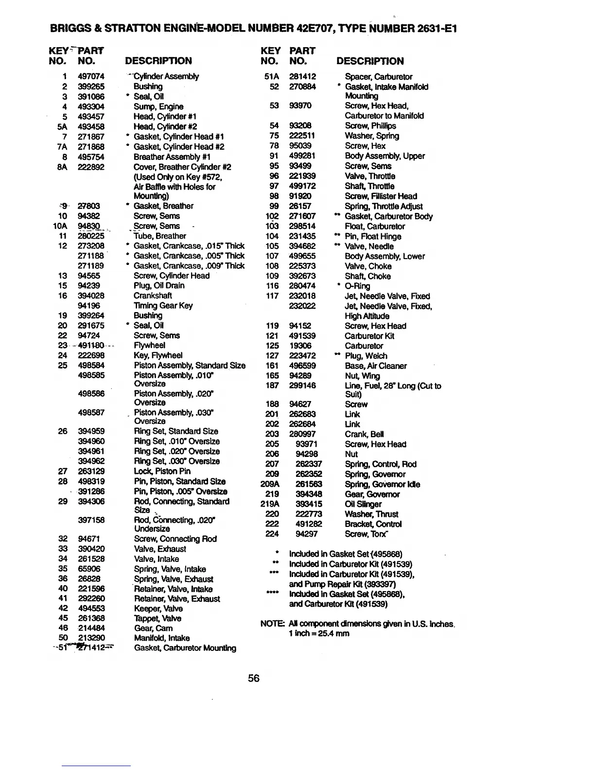 BRIGGS & STRATTON ENGINE-MODEL NUMBER 42E707, TYPE NUMBER 2631-E1