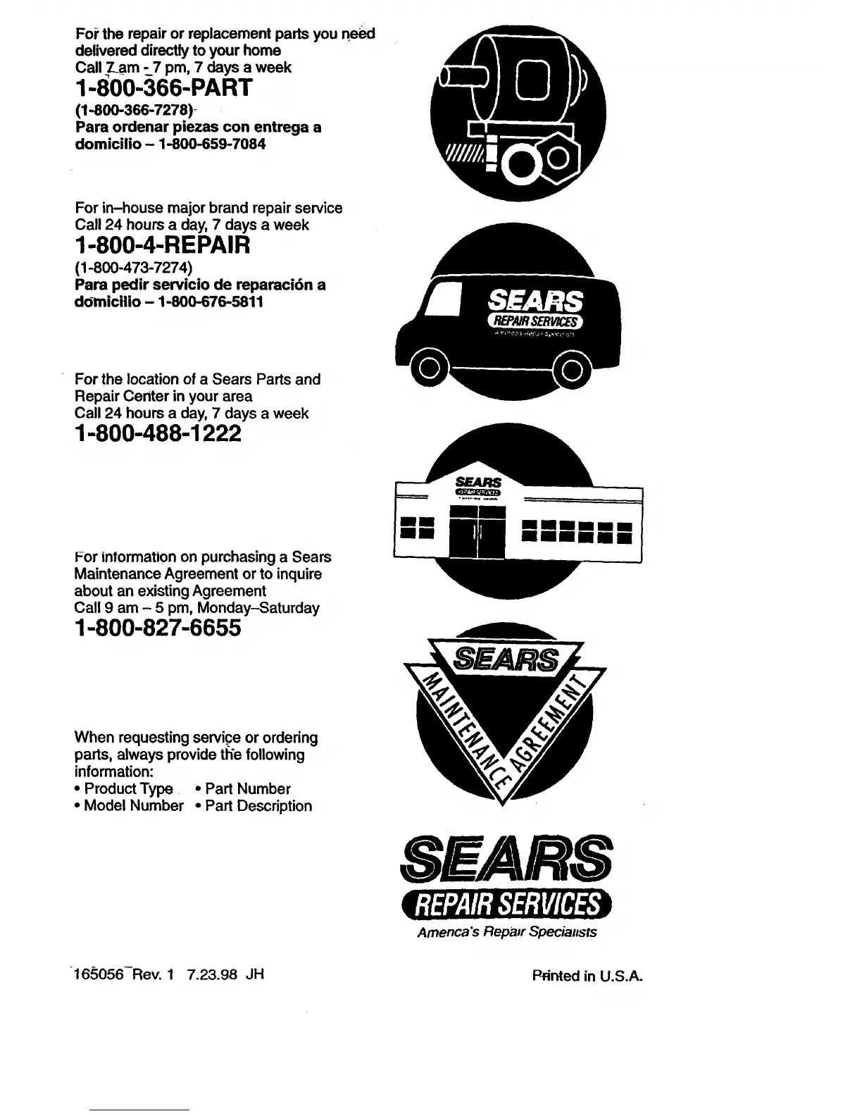16_;056-Rev. 1 7.23.98 JH Pdnted in U.S.A.