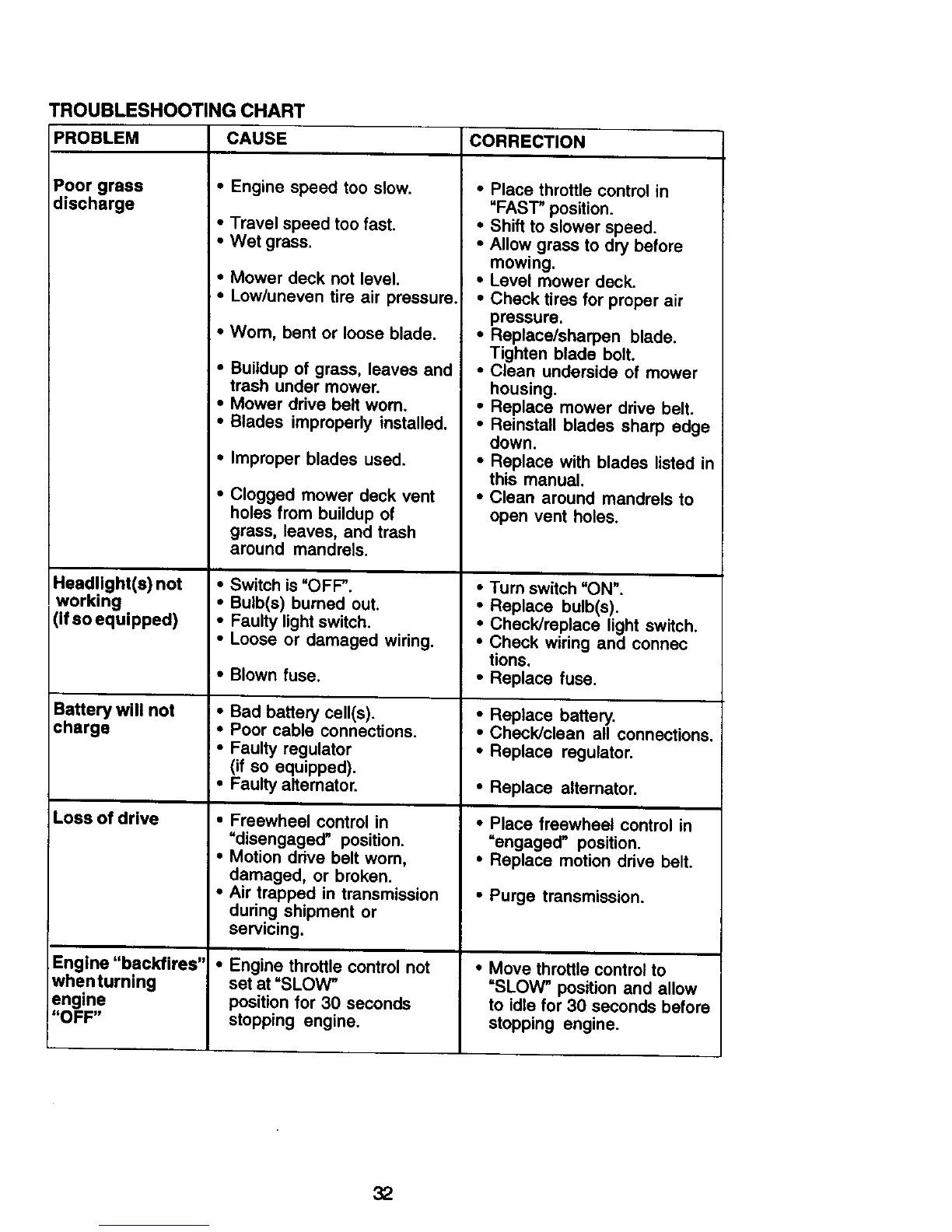 TROUBLESHOOTING CHART