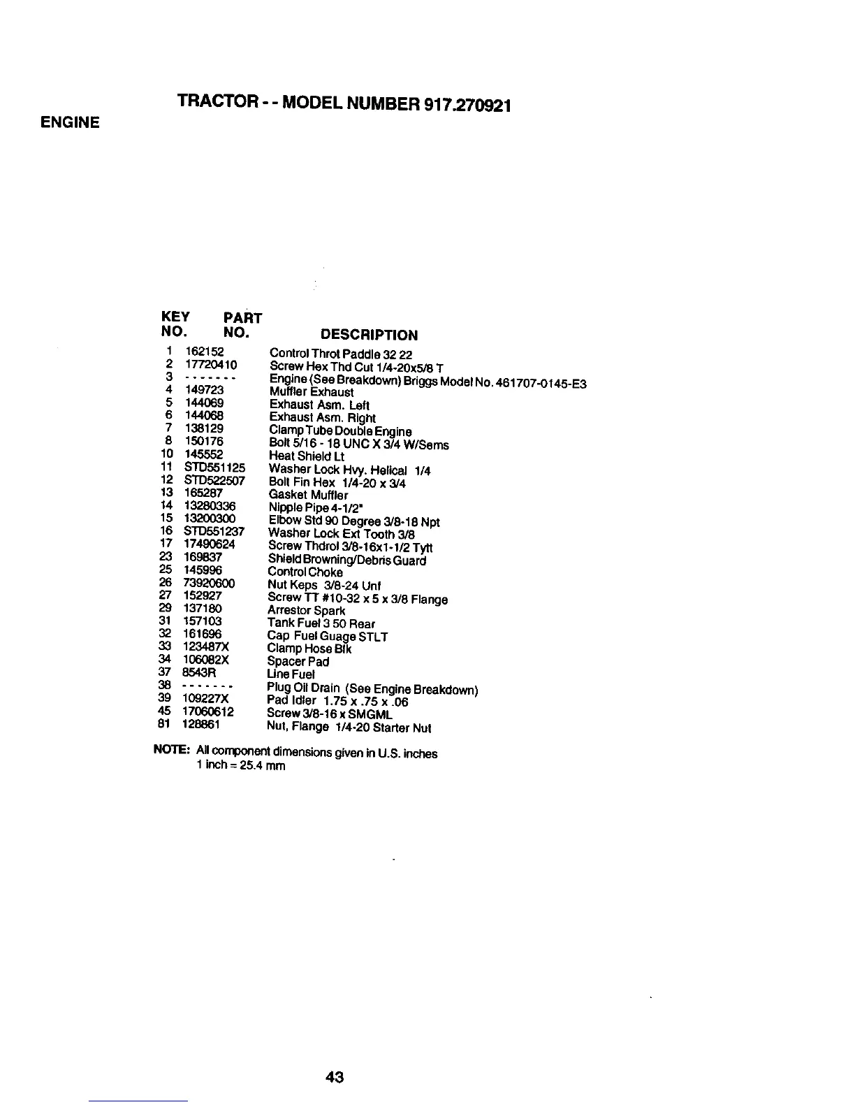 TRACTOR - - MODEL NUMBER 917.270921