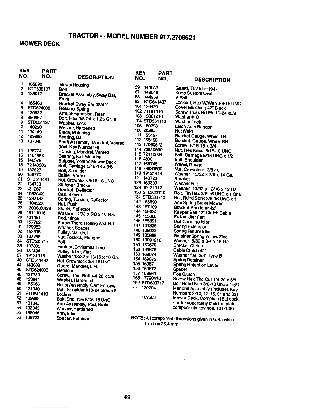 TRACTOR -- MODEL NUMBER 917.2709621