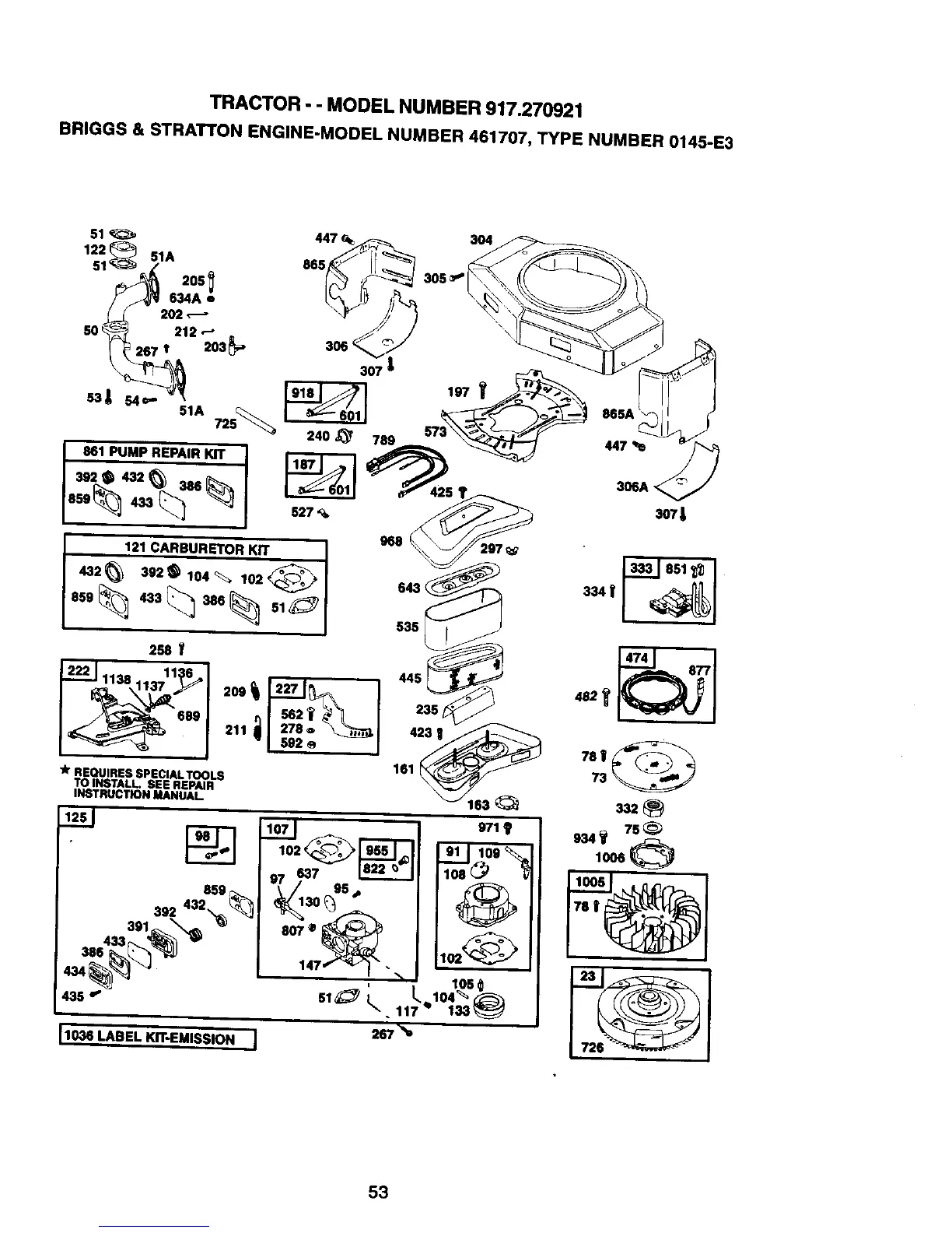 BRIGGS& STRATTONENGINE-MODELNUMBER461707,TYPENUMBER0145-E3