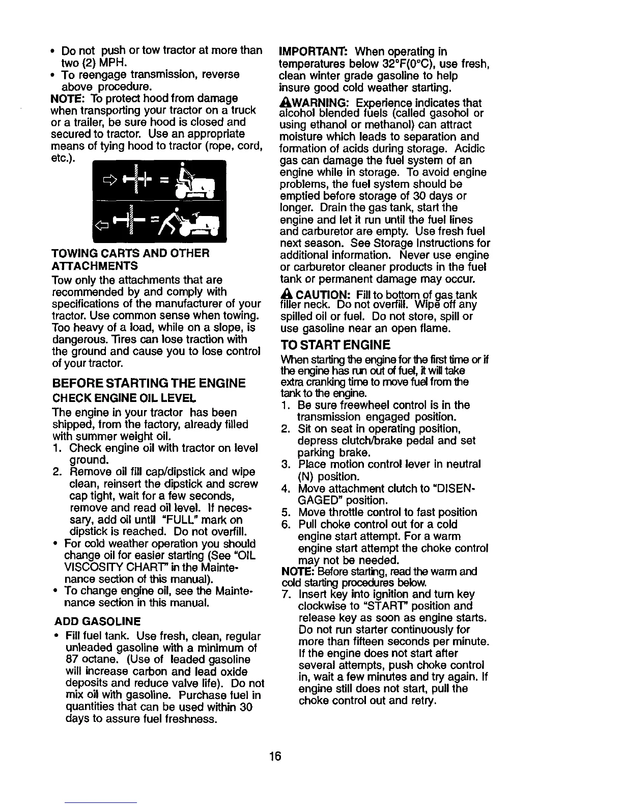 BEFORE STARTING THE ENGINE