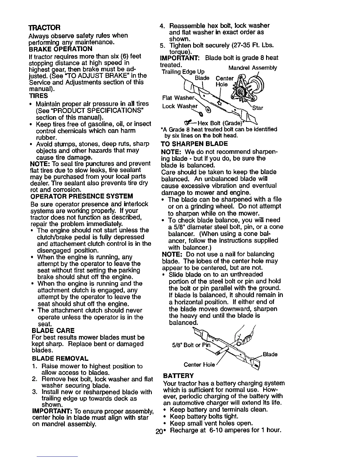 IMPORTANT: Blade bolt is grade 8 heat