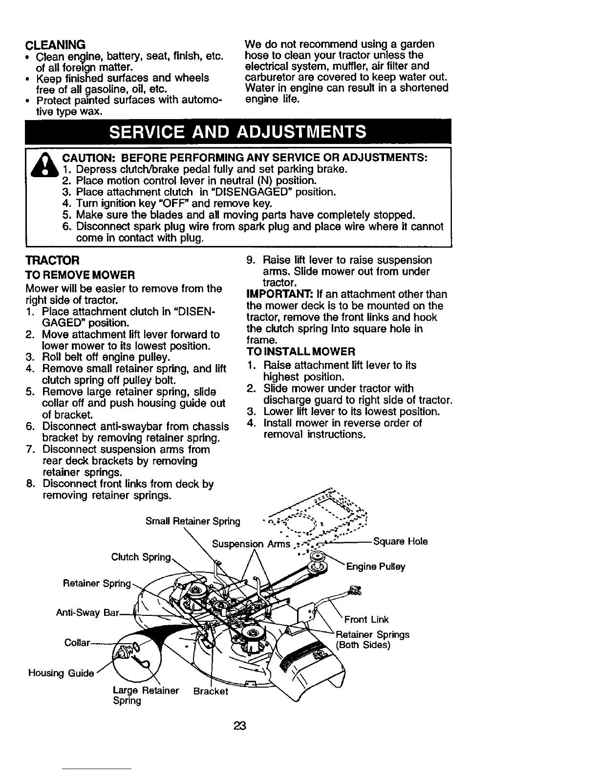 CAUTION: BEFORE PERFORMING ANY SERVICE OR ADJUSTMENTS: