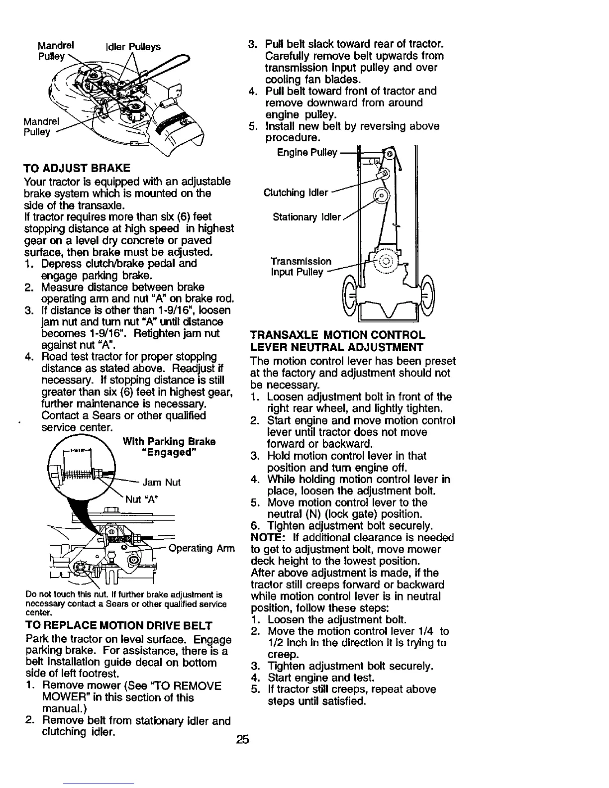 5. If tractor still creeps, repeat above