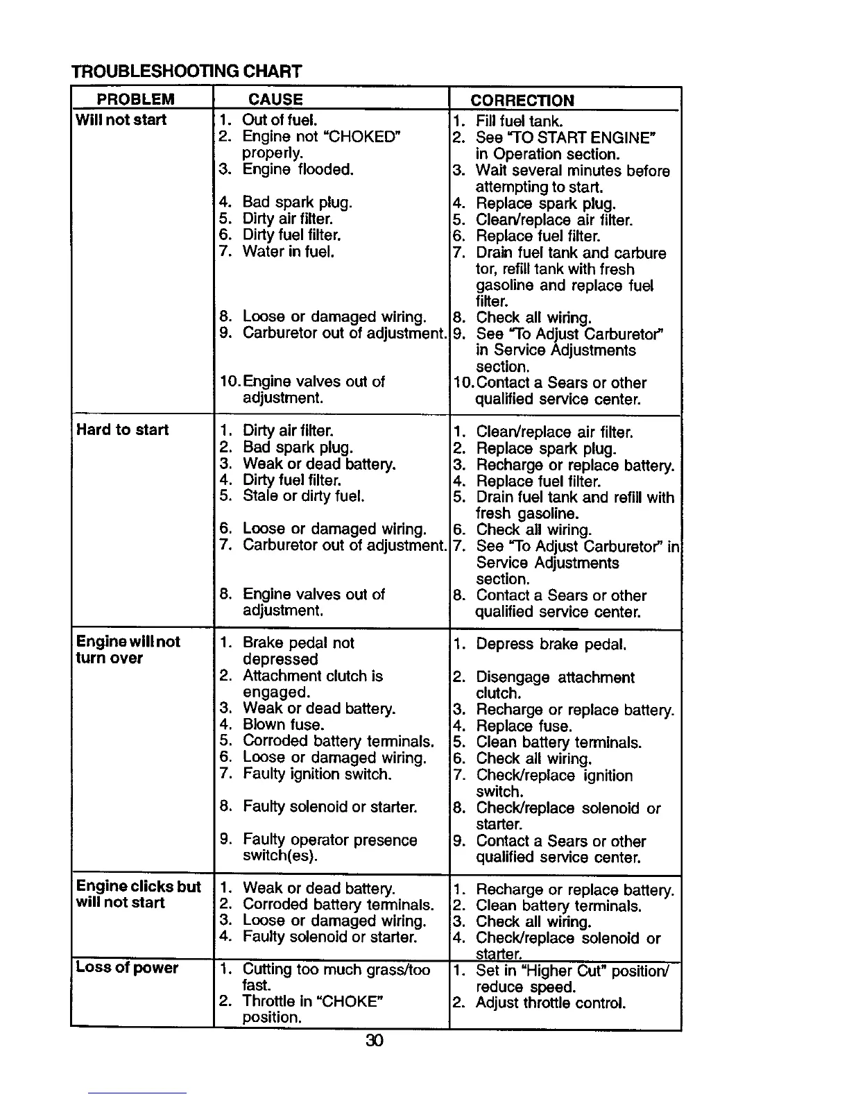 7. Carburetor out of adjustment. 7.