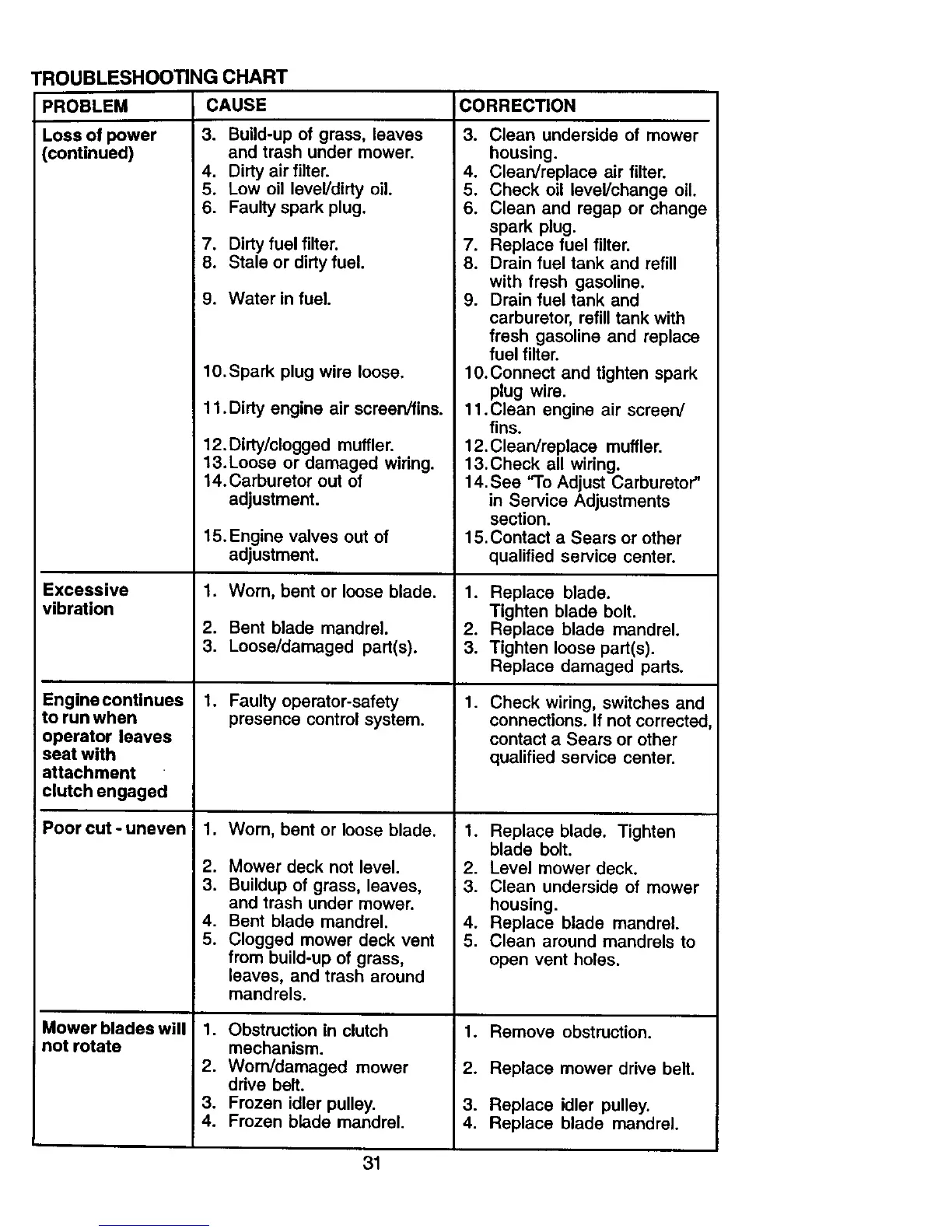 2. Worn/damaged mower