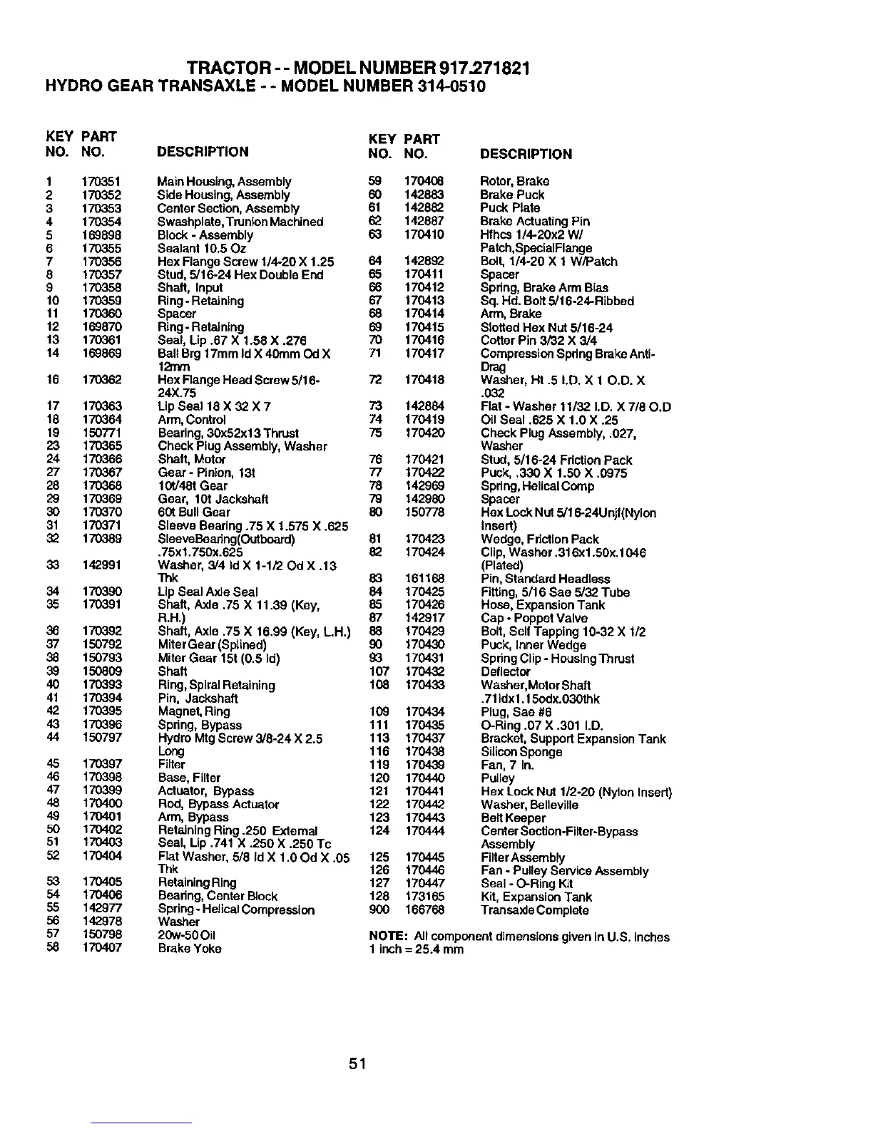 HYDRO GEAR TRANSAXLE - - MODEL NUMBER 314-0510