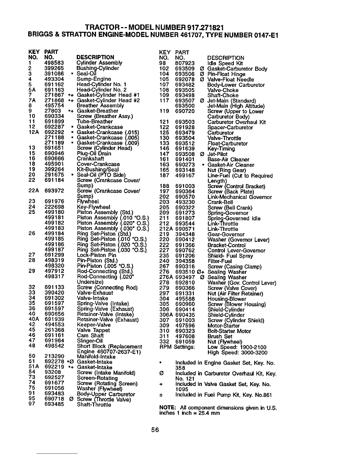 Included in CarburetorOverhaul Kit, Key.